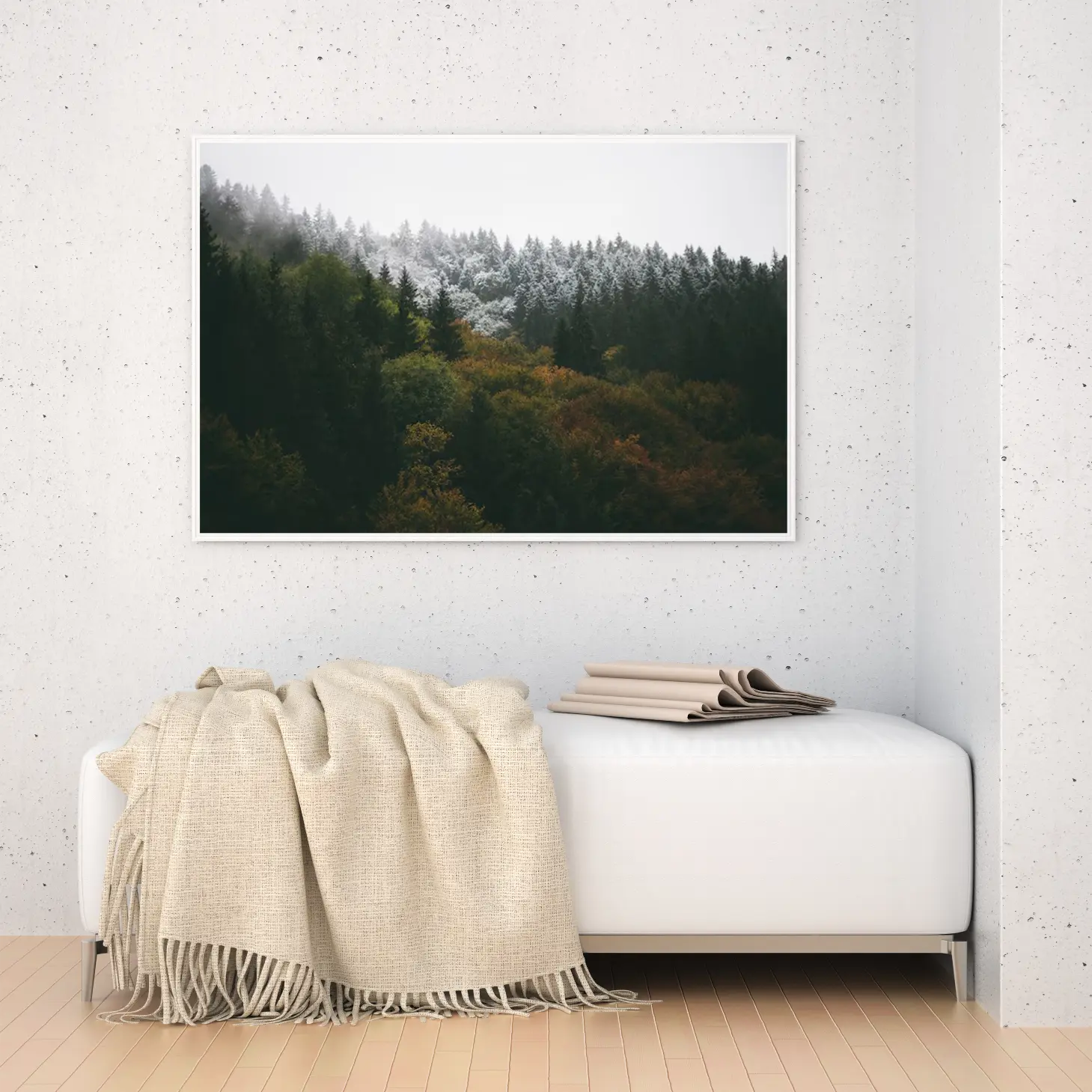 استمتع بجمال الطبيعة الخلابة مع هذه اللوحة الفنية التي تبرز تدرجات الأخضر والرمادي، حيث تتناغم الأشجار المغطاة بالثلوج مع ألوان الخريف الدافئة. تتوفر اللوحة بمقاسات متعددة وإطارات أنيقة، مما يجعلها خيارًا مثاليًا لإضفاء لمسة من الرقي على أي مساحة. إنها هدية تعبر عن الذوق الرفيع، مناسبة للمناسبات الخاصة، وتضفي لمسة فنية مميزة على أي منزل.