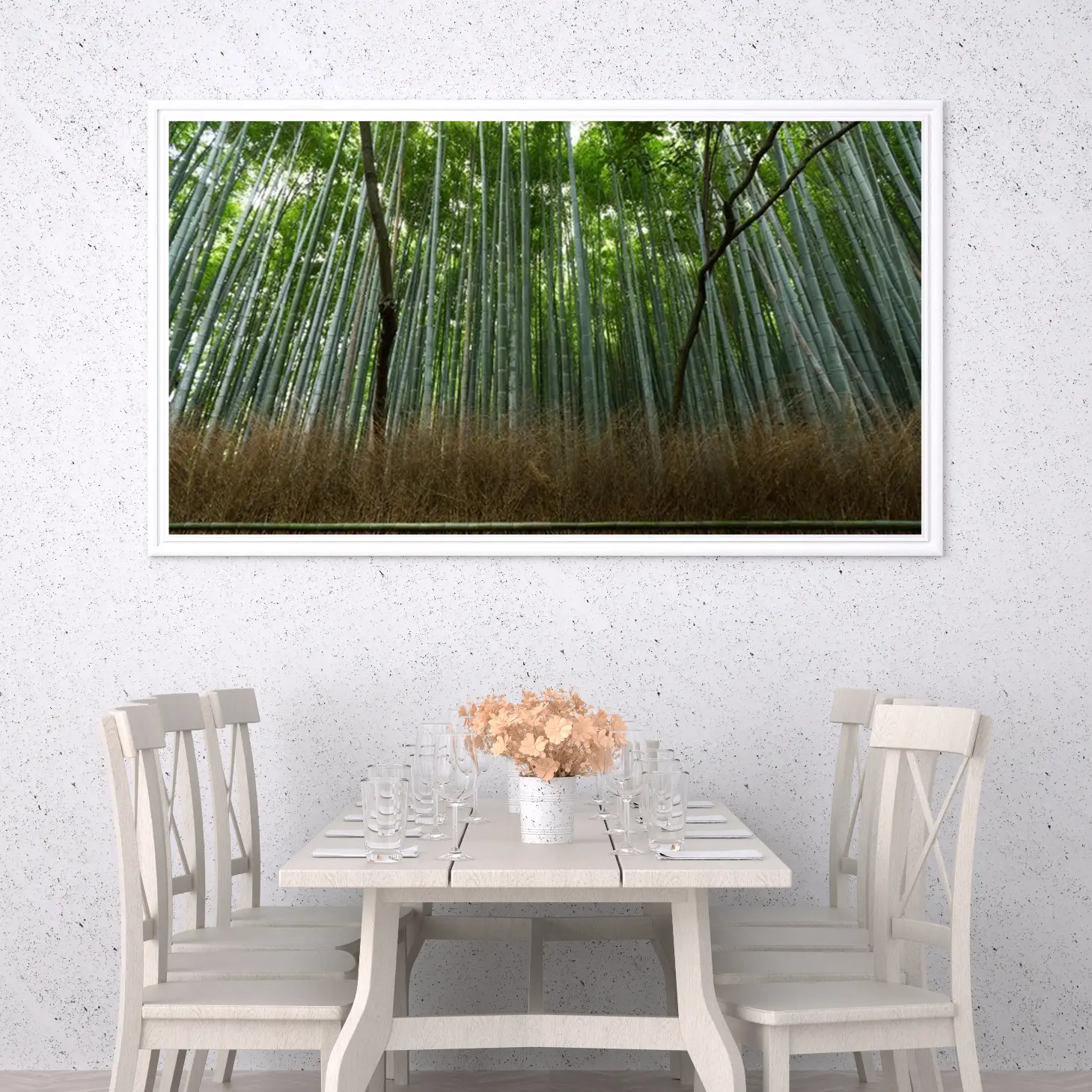 تجسد هذه اللوحة جمال الطبيعة الخلابة من خلال مشهد غابة من الخيزران، حيث تتعانق الأعمدة الخضراء في تناغم رائع، مما يخلق إحساسًا بالهدوء والسكينة. تساهم الألوان الزاهية في إضفاء جو من الانتعاش والحيوية، مما يجعلها خيارًا مثاليًا لإضفاء لمسة من الطبيعة على أي مساحة. إن هذا العمل الفني لا يقتصر على كونه مجرد ديكور جداري، بل هو استثمار جمالي يعكس ذوقًا رفيعًا ويعزز نمط الحياة العصري.