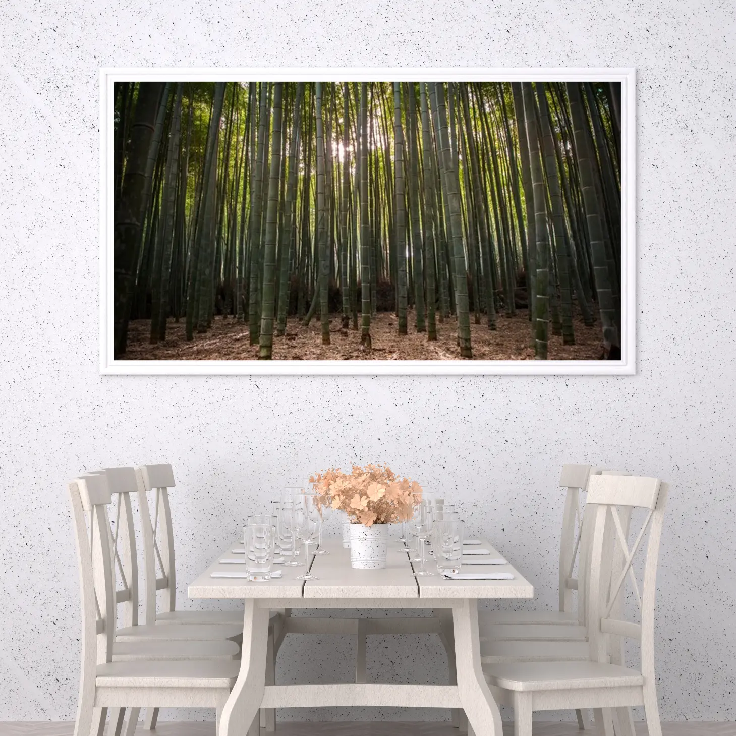 استمتع بجمال الطبيعة الخلابة مع هذه اللوحة الرائعة التي تجسد غابة الخيزران بألوانها الزاهية وإضاءة الشمس المتسللة بين الأعمدة الخضراء. خيار أنيق للهدايا، تعكس هذه التحفة الفنية ذوقك الرفيع، وتناسب جميع المناسبات الخاصة، مع توفر مجموعة متنوعة من المقاسات والإطارات لتناسب كل الأذواق. اجعل من مساحتك ملاذًا للهدوء والجمال، وقدم هدية تعبّر عن المشاعر بأناقة وثقة.