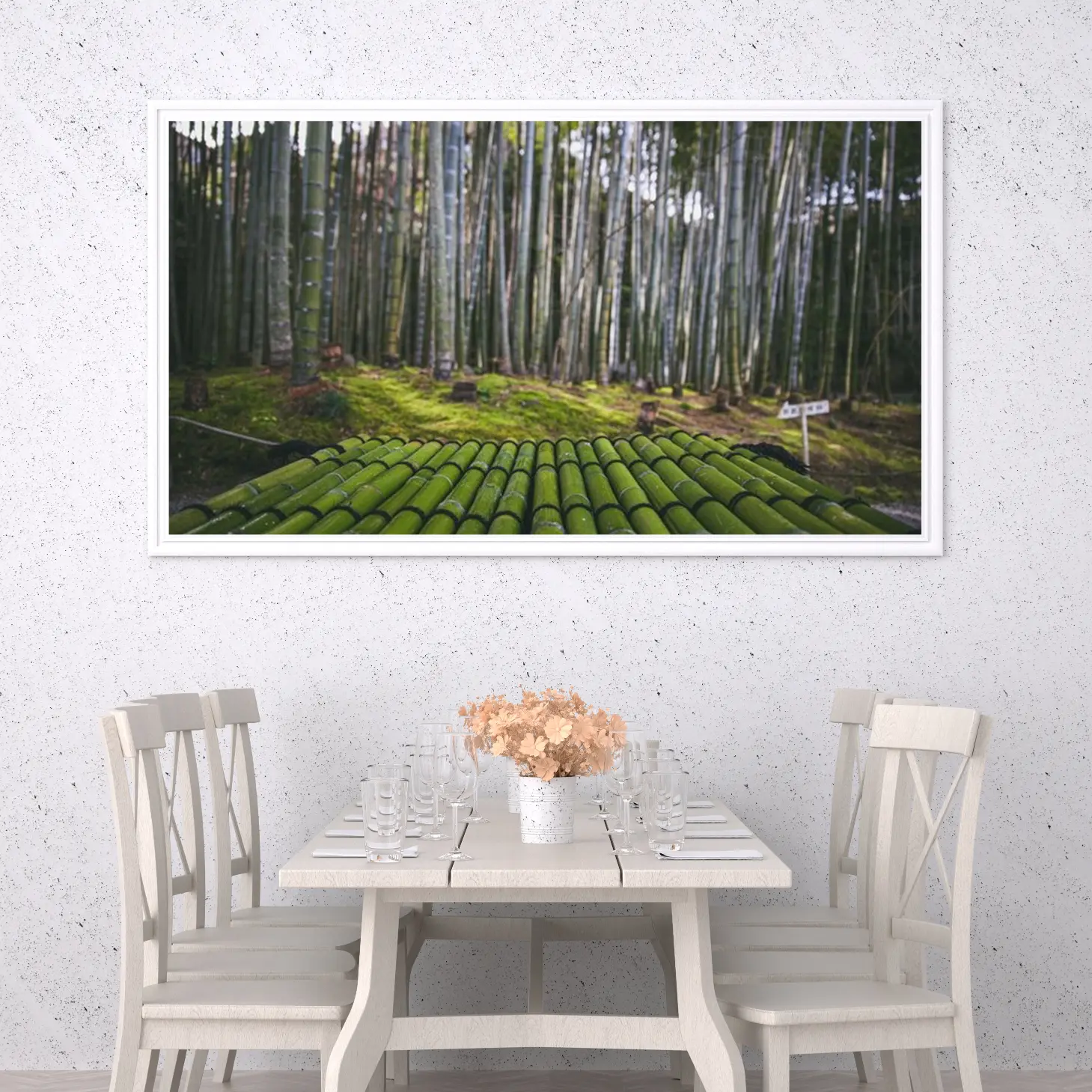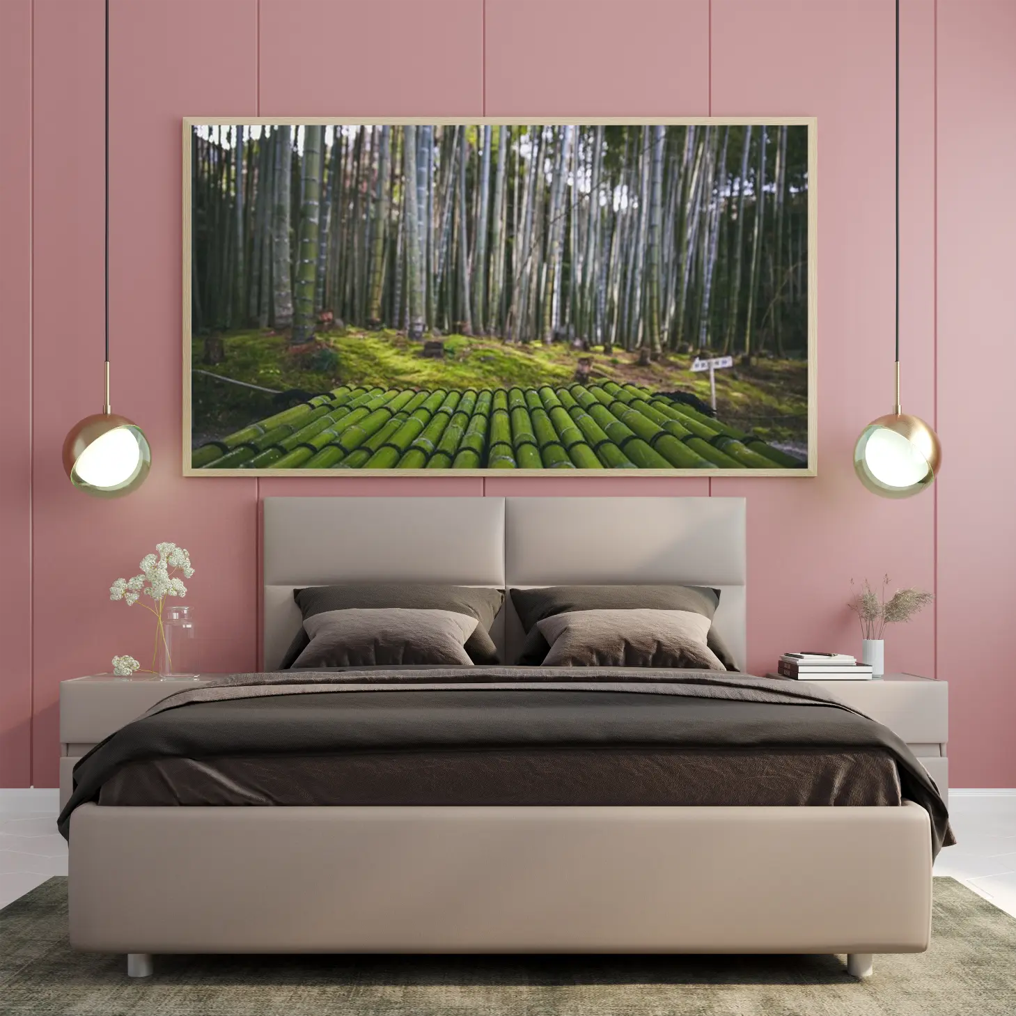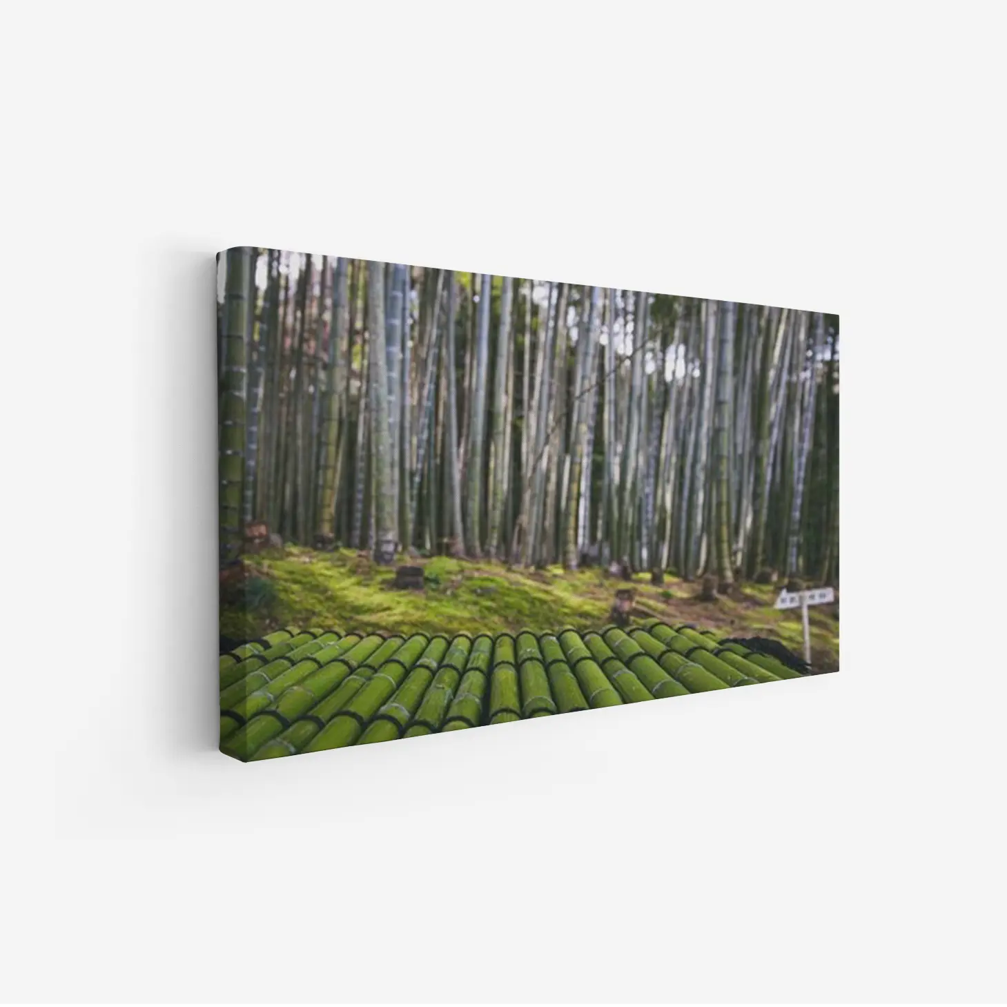 تتجلى في هذه اللوحة جماليات الطبيعة الخلابة، حيث تتناغم ظلال الأخضر مع ألوان الأرض، مما يخلق إحساسًا بالهدوء والسكينة. تبرز أعمدة البامبو الشاهقة في الخلفية، محاطة بأرض مكسوة بالطحالب، مما يضفي على المشهد طابعًا طبيعيًا ساحرًا. إن هذه القطعة الفنية ليست مجرد ديكور جداري، بل هي دعوة لاستكشاف جمال الحياة البسيطة، مما يجعلها مثالية لإضفاء لمسة من الأناقة على أي مساحة.