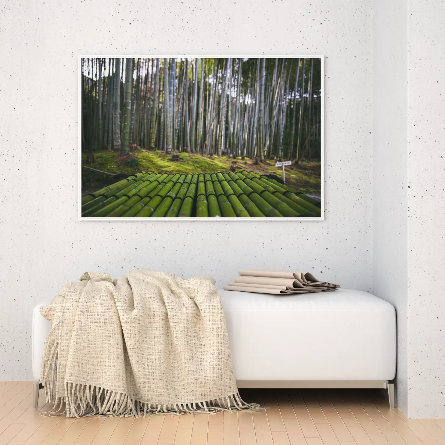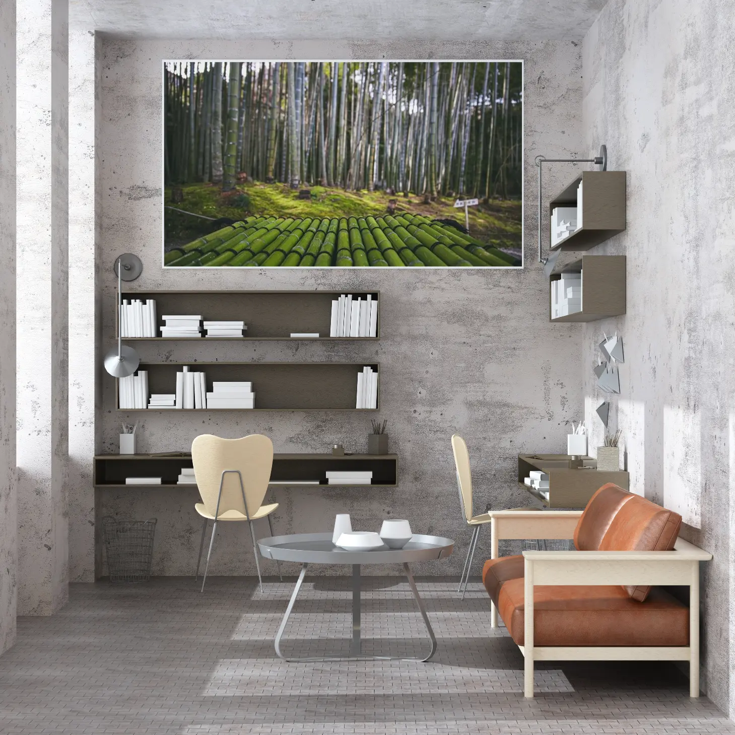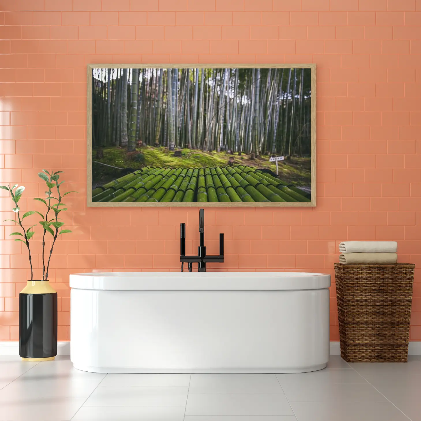 تتجلى في هذه اللوحة جماليات الطبيعة الخلابة، حيث تتناغم ظلال الأخضر مع ألوان الأرض، مما يخلق إحساسًا بالهدوء والسكينة. تبرز أعمدة البامبو الشاهقة في الخلفية، محاطة بأرض مكسوة بالطحالب، مما يضفي على المشهد طابعًا طبيعيًا ساحرًا. إن هذه القطعة الفنية ليست مجرد ديكور جداري، بل هي دعوة لاستكشاف جمال الحياة البسيطة، مما يجعلها مثالية لإضفاء لمسة من الأناقة على أي مساحة.