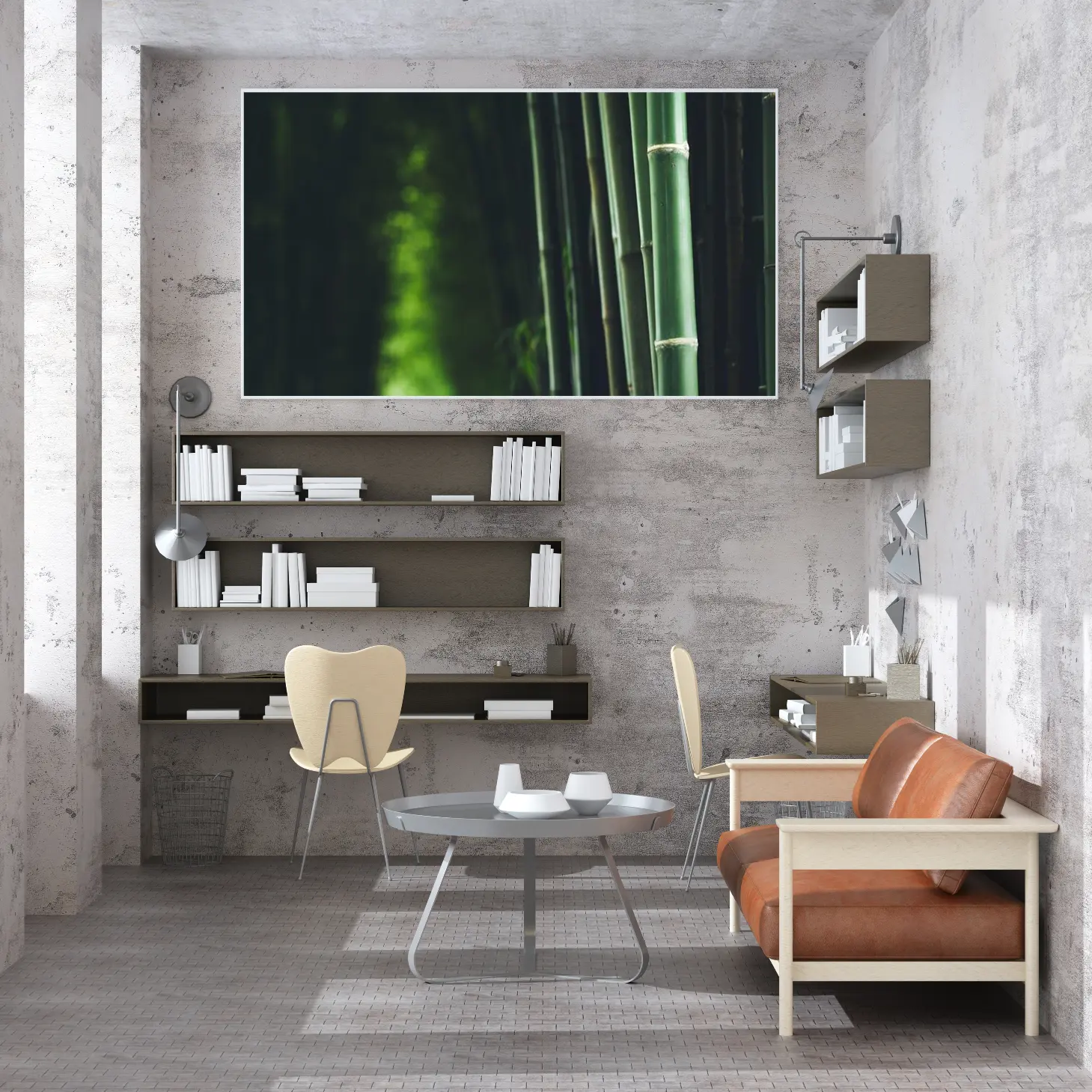 لوحة غابات – أعمدة خيزران – ألوان خضراء – هادئ – لوحات طبيعة – لوحات كانفاس