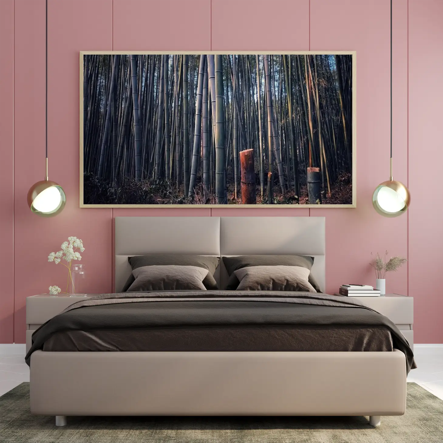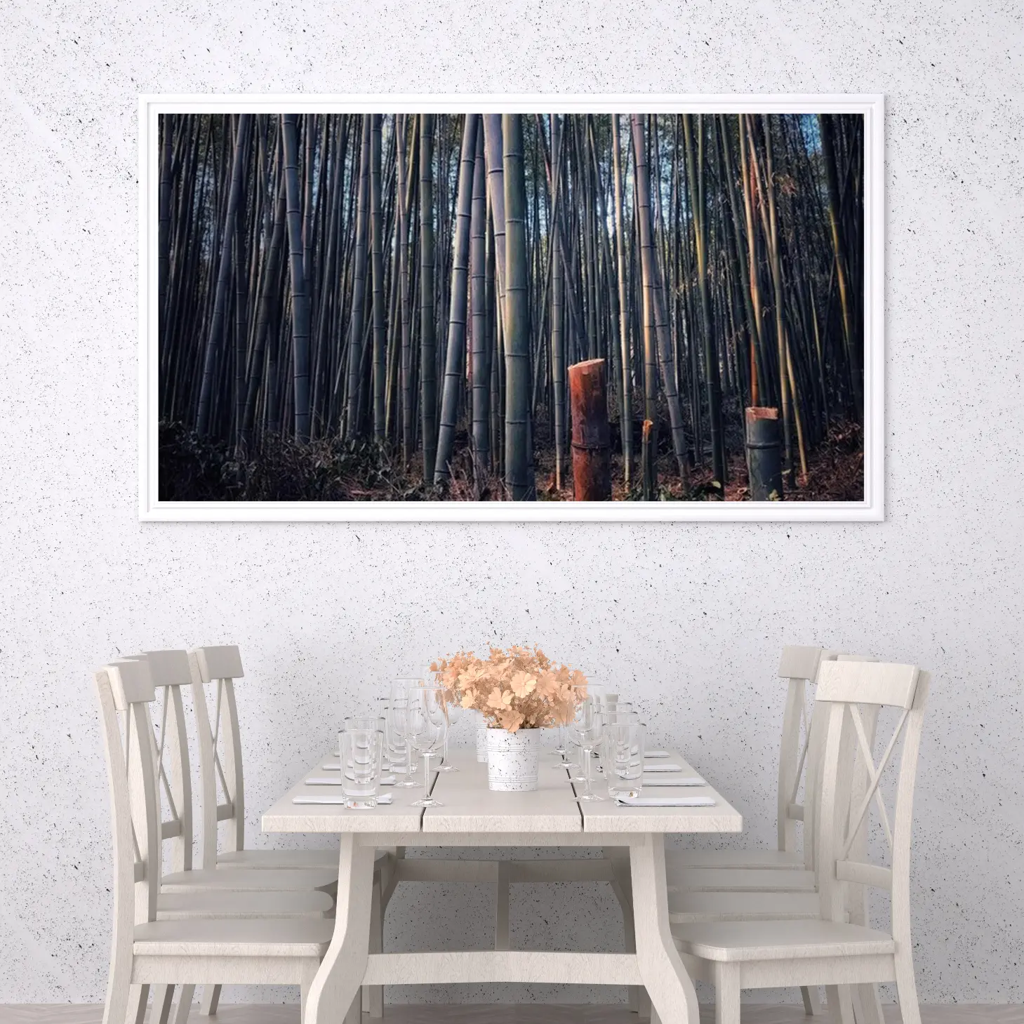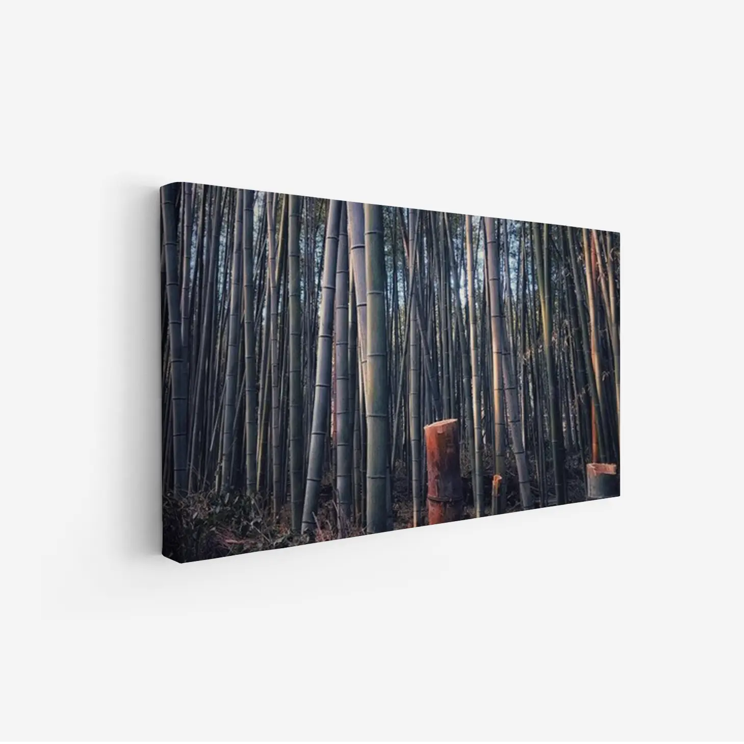 لوحة غابات – أعمدة خيزران – ألوان داكنة – هادئ – لوحات طبيعة – لوحات كانفاس