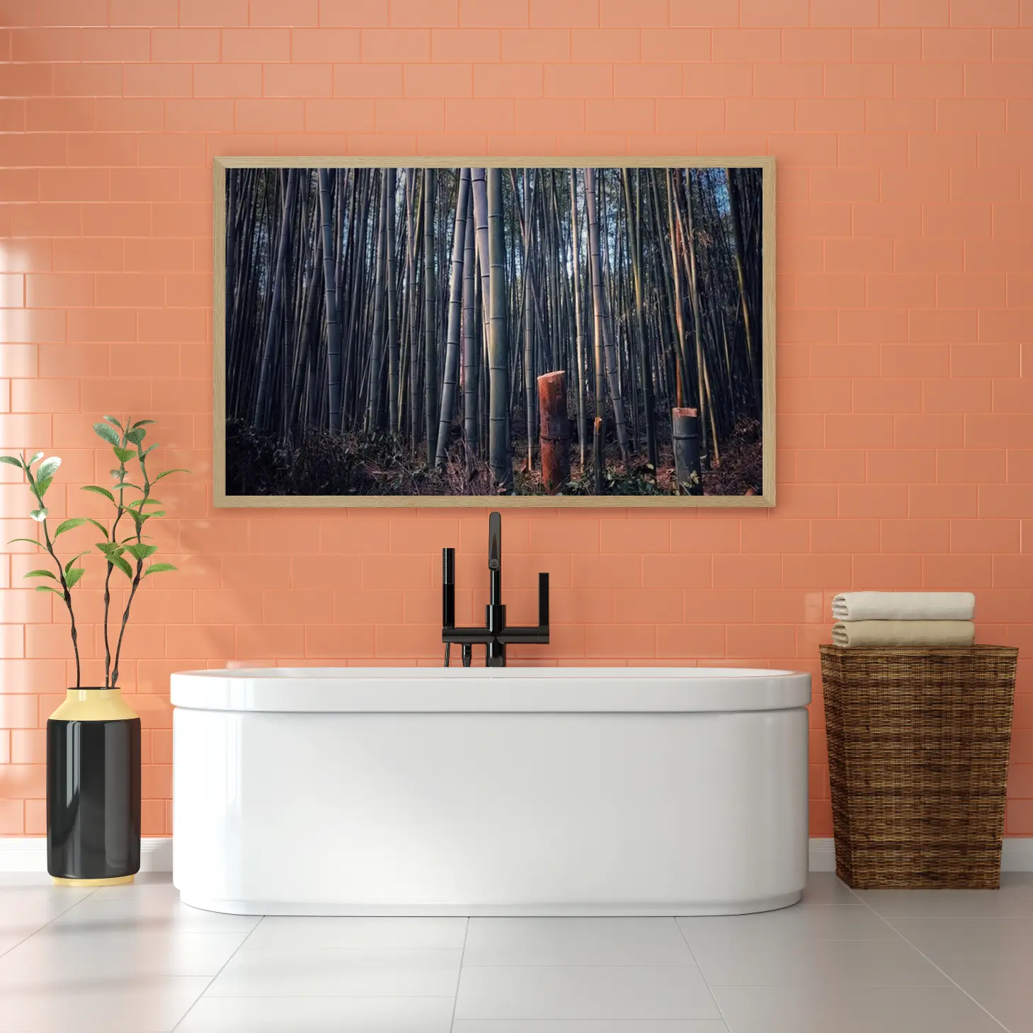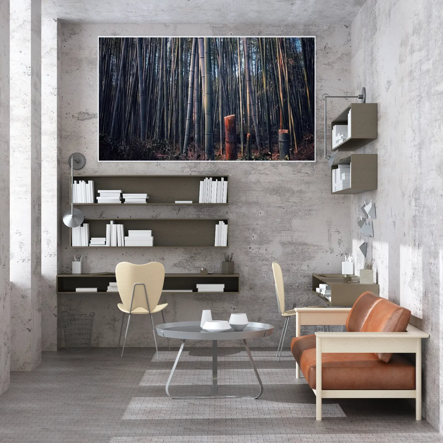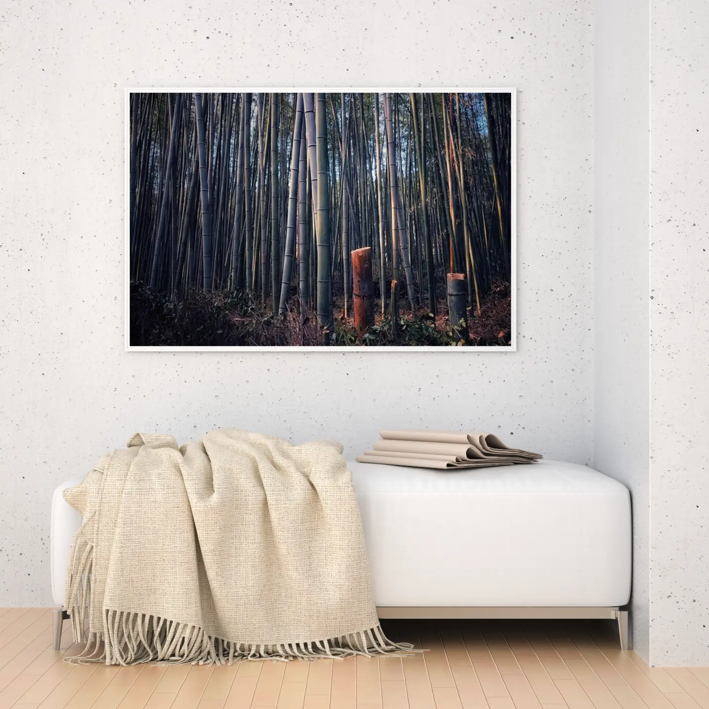 لوحة غابات – أعمدة خيزران – ألوان داكنة – هادئ – لوحات طبيعة – لوحات كانفاس