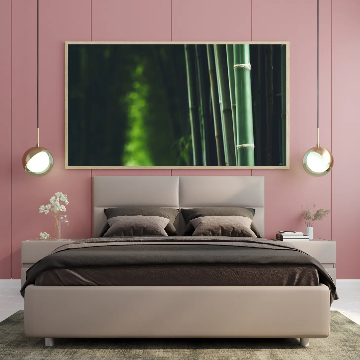 تتجلى في هذا العمل الفني لوحة تعكس جمال الطبيعة الخلابة، حيث تتناغم أعمدة الخيزران الخضراء في تنسيق رائع، مما يضفي إحساسًا بالهدوء والسكينة على أي مساحة تُعرض فيها. تخلق الألوان الغنية والظلال العميقة جوًا من الانتعاش، مما يجعلها خيارًا مثاليًا لإضفاء لمسة من الأناقة على الديكور المنزلي. إن وجود هذه اللوحة في المكان يعكس نمط حياة متوازن ومتناغم، حيث تلتقي الطبيعة بالفن.