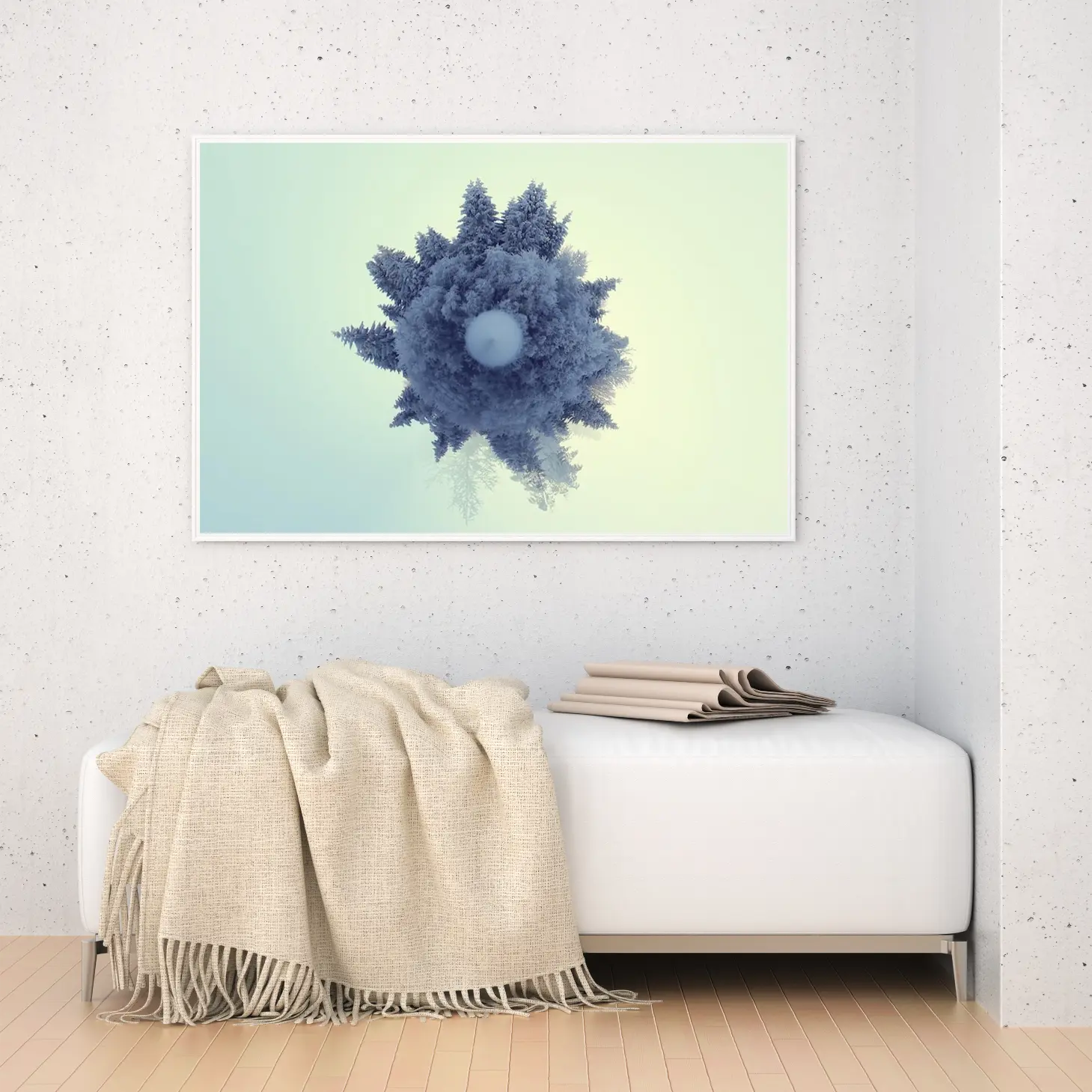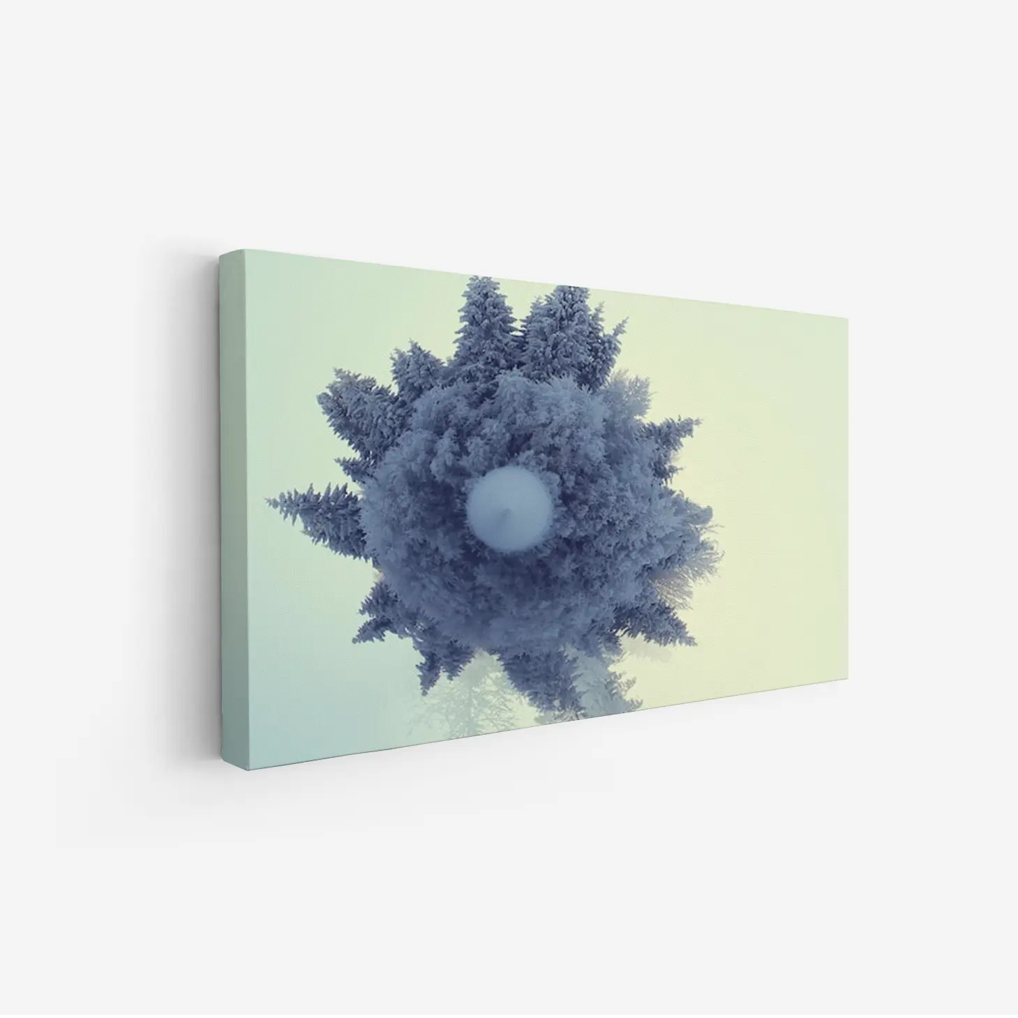 لوحة غابات بألوان زرقاء وبيضاء تعكس جمال الطبيعة في أجواء هادئة، لوحات طبيعة، لوحات كانفاس.