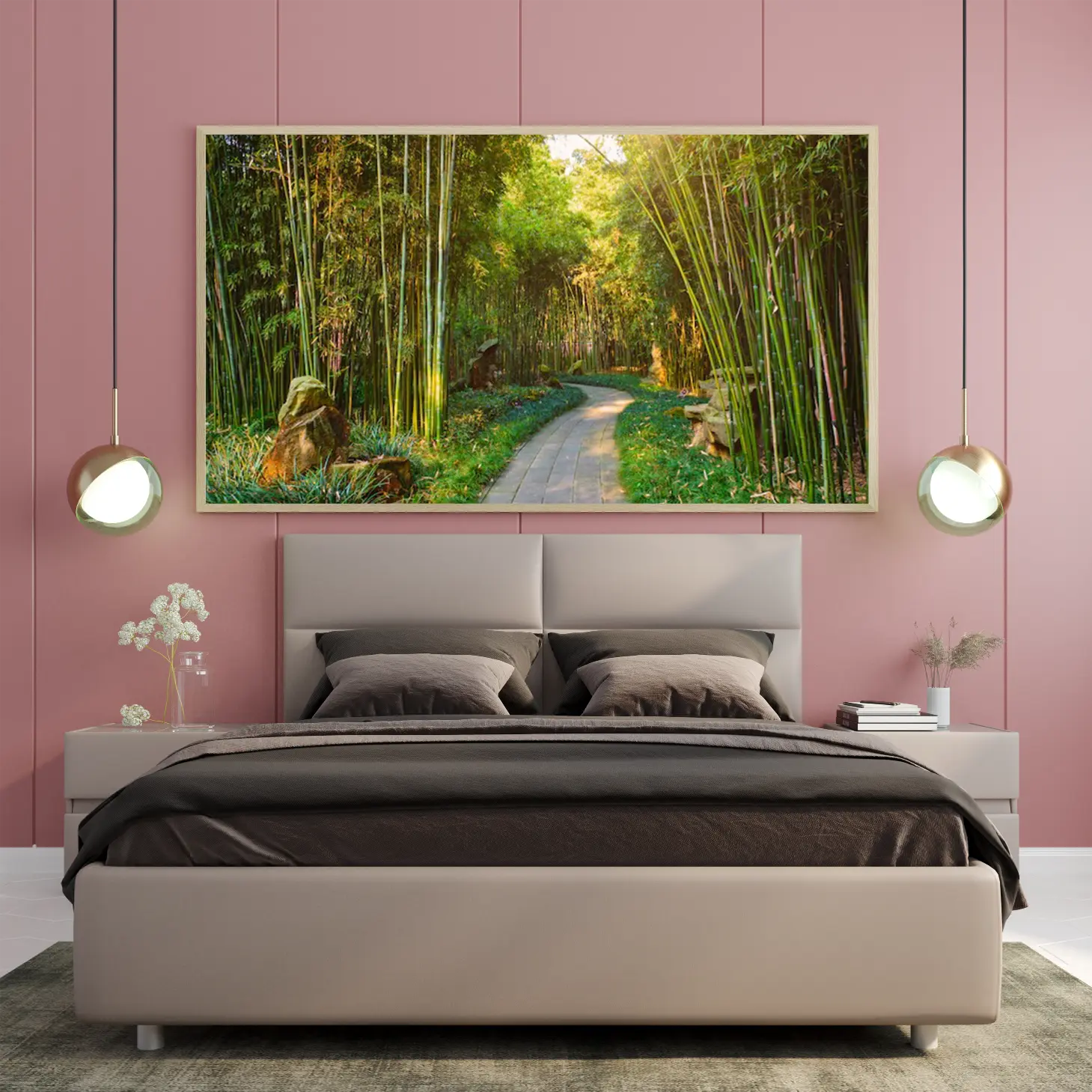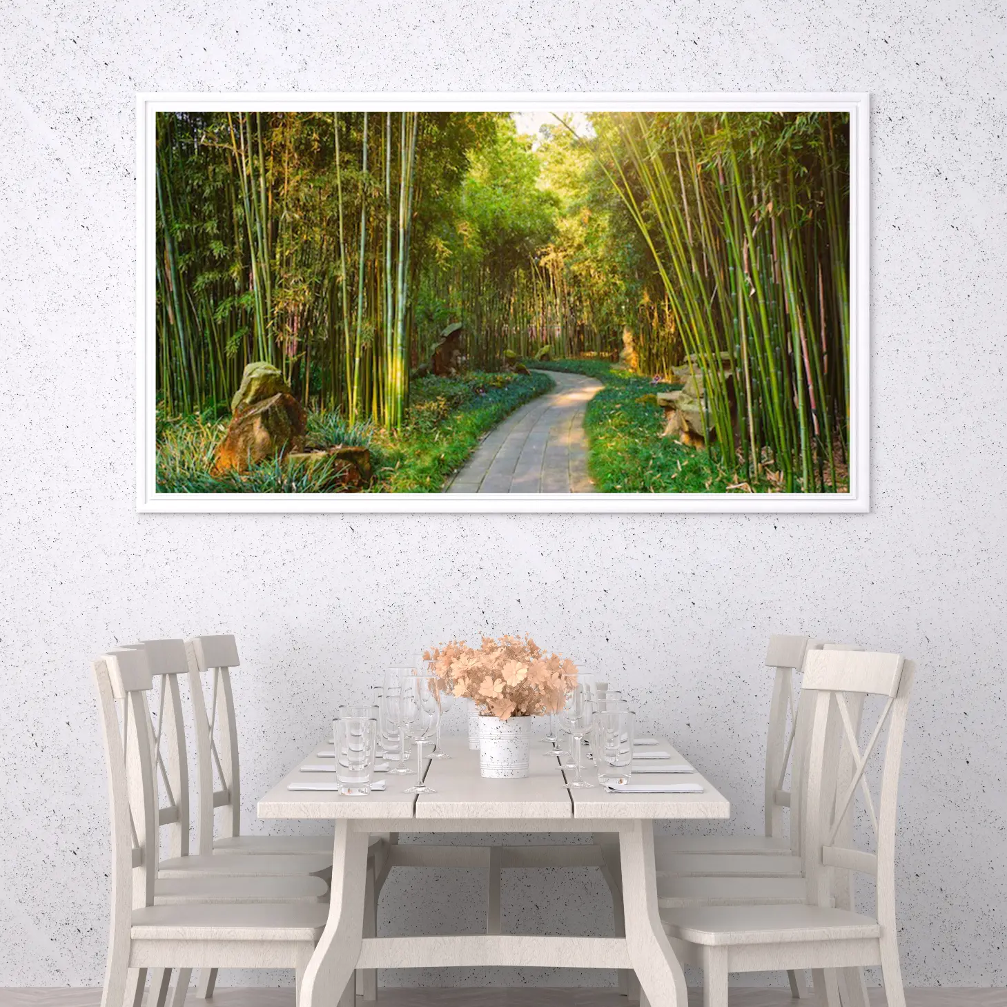 استمتع بجمال الطبيعة الخلابة مع هذه اللوحة الرائعة التي تجسد مسارًا ساحرًا وسط غابة من الخيزران، حيث تلتقي الألوان الزاهية مع الهدوء والسكينة. تتوفر بأحجام متعددة وإطارات أنيقة، مما يجعلها خيارًا مثاليًا لإضفاء لمسة من الفخامة على أي مساحة، أو كهدية تعبّر عن الذوق الرفيع في المناسبات الخاصة.