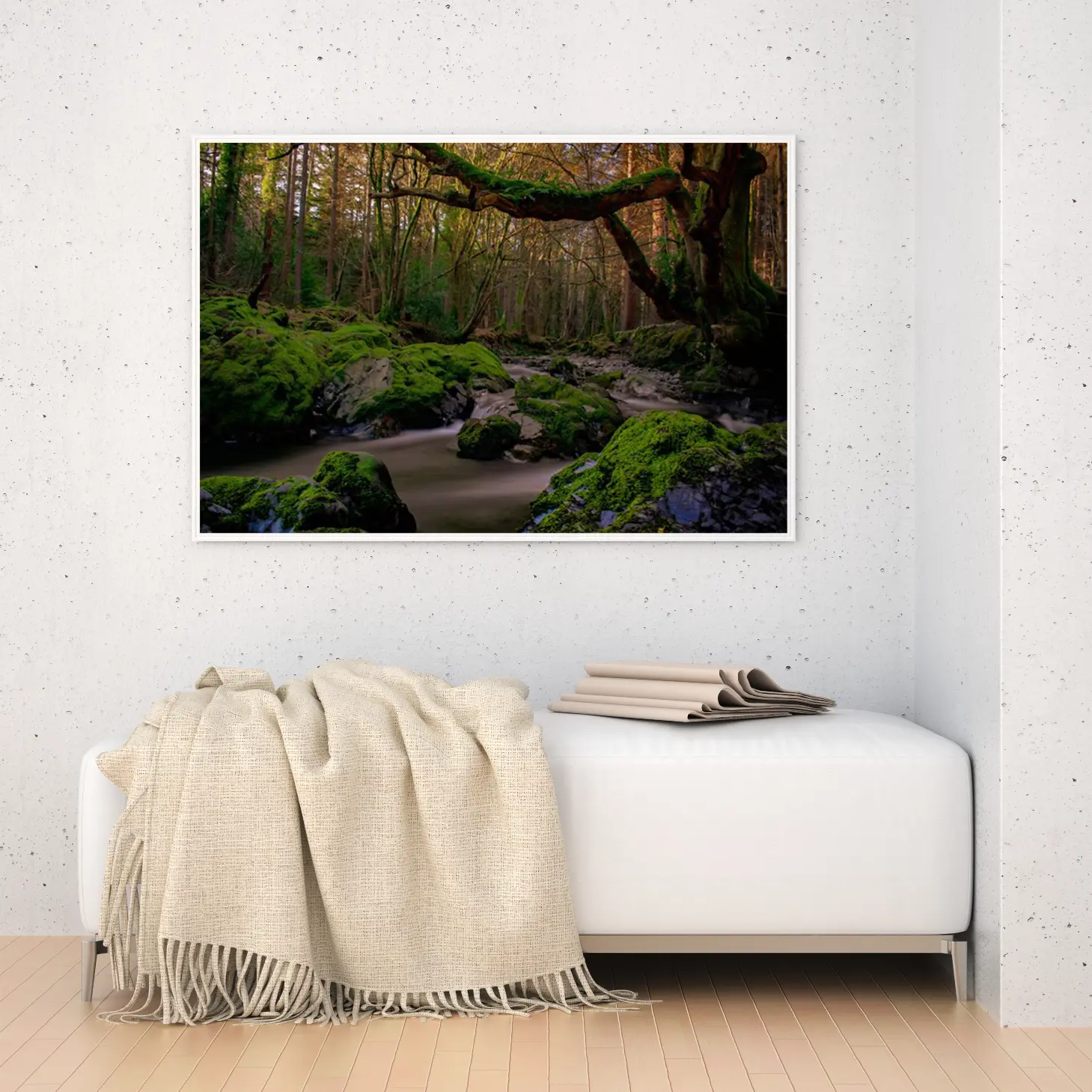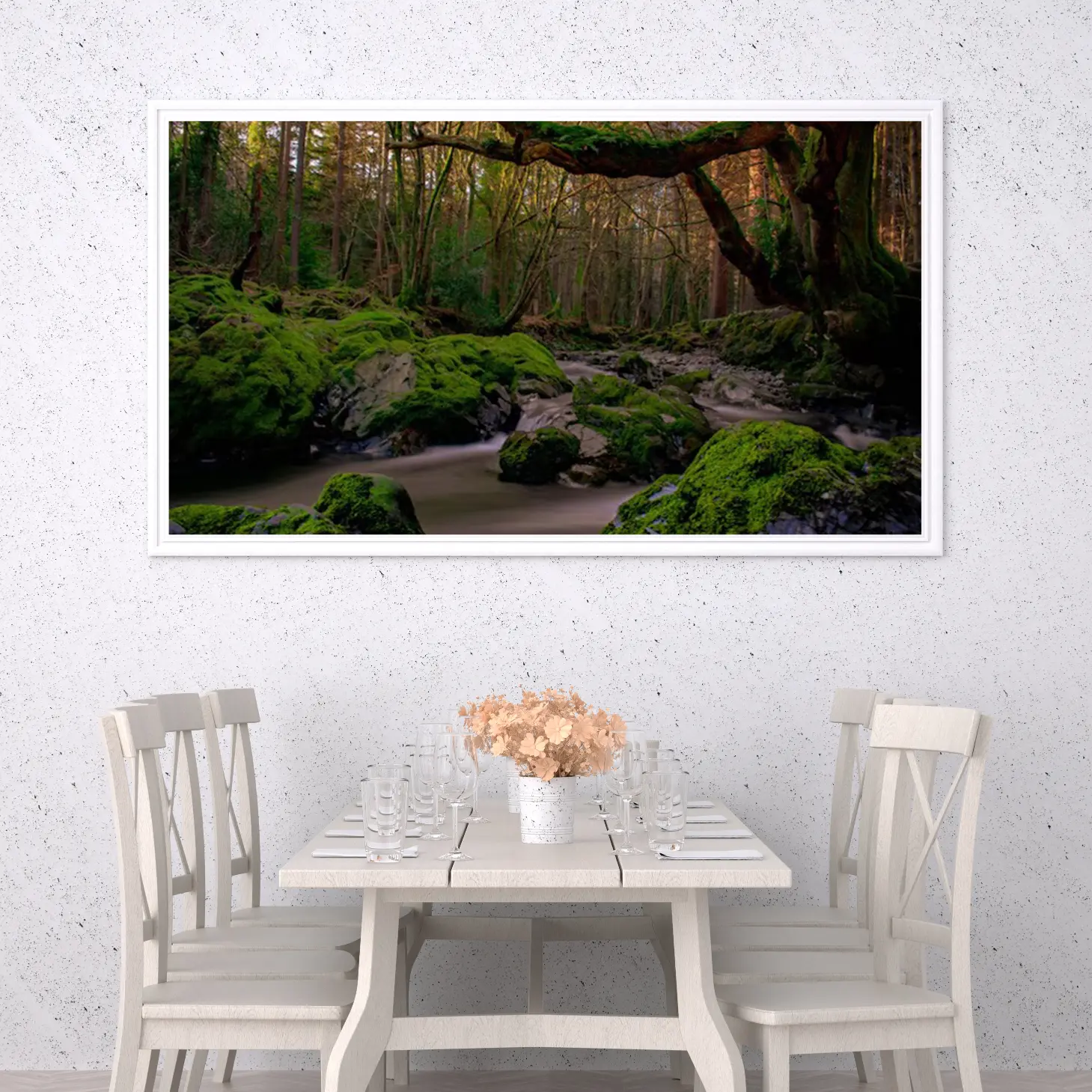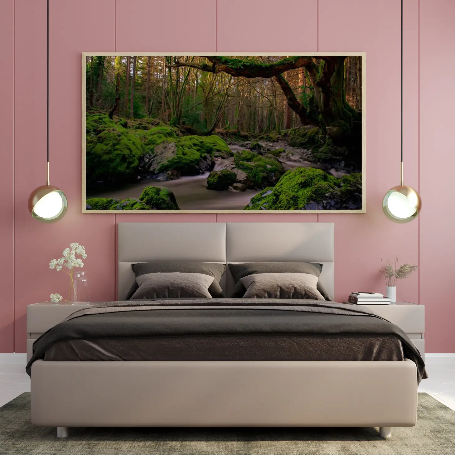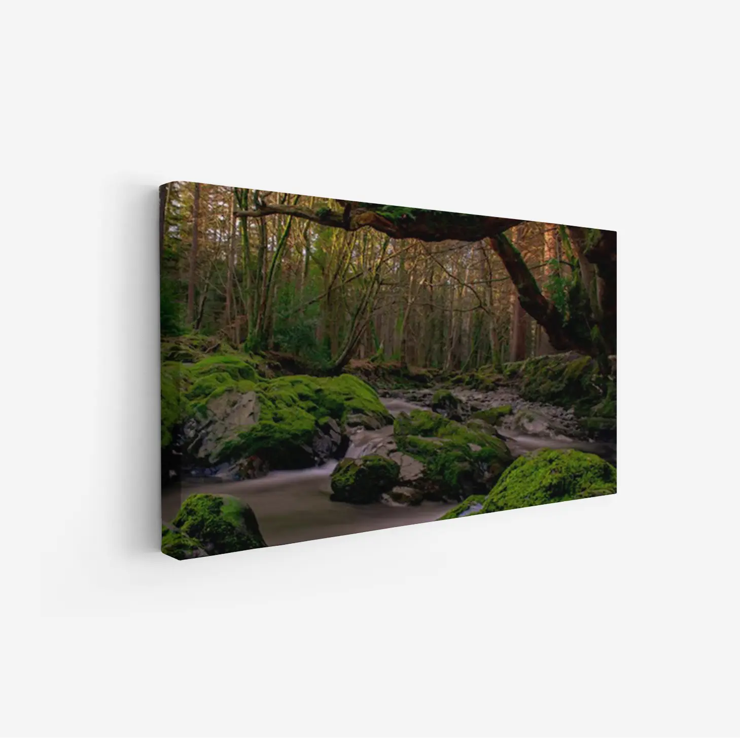 لوحة غابات – مجرى مائي – ألوان خضراء – هادئ – لوحات طبيعة – لوحات كانفاس