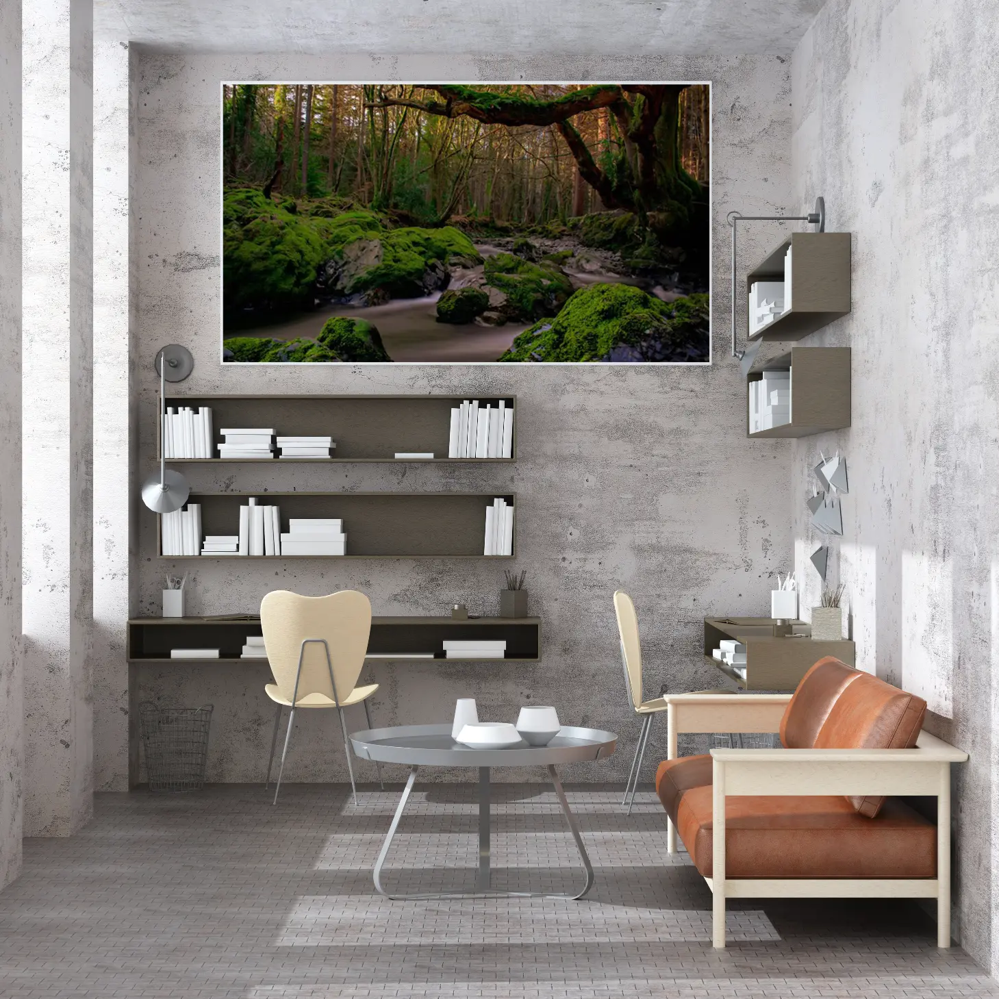 استمتع بجمال الطبيعة الخلابة مع هذه اللوحة الرائعة التي تجسد سحر الغابات والمياه الجارية، حيث تتناغم الألوان الخضراء مع الصخور الداكنة لتخلق إحساسًا بالهدوء والسكينة. تتوفر اللوحة بمقاسات متعددة وإطارات أنيقة، مما يجعلها خيارًا مثاليًا للهدايا التي تعبر عن الذوق الرفيع في المناسبات الخاصة. اجعل من منزلك ملاذًا فنيًا يعكس ذوقك الرفيع ويضفي لمسة من الجمال الطبيعي.