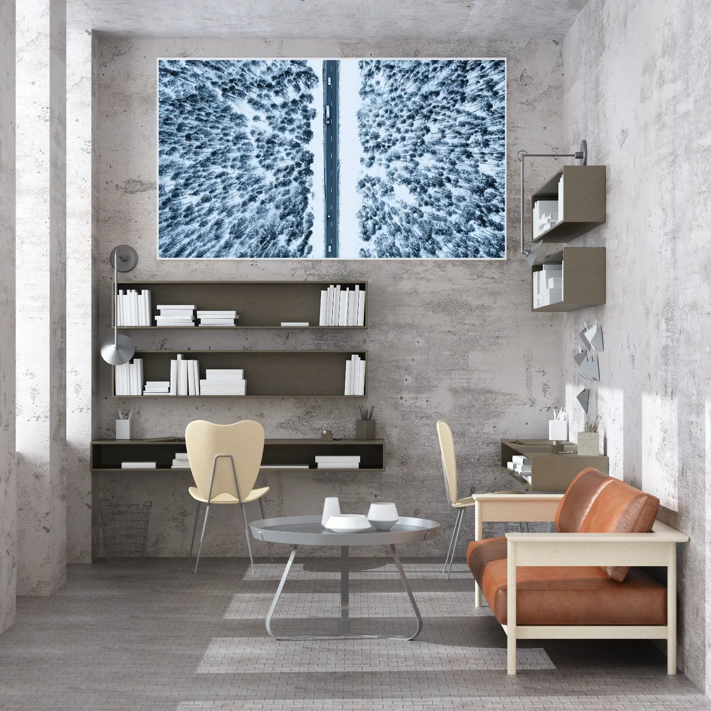 تتجلى في هذه اللوحة الفنية رؤية فريدة تعكس جمال الطبيعة في تناغمها مع الحياة الحضرية. يظهر المشهد من منظور علوي، حيث تتناغم الطرقات مع الغابات الكثيفة، مما يخلق إحساسًا بالهدوء والسكينة. الألوان الباردة تساهم في تعزيز الشعور بالانتعاش، مما يجعلها خيارًا مثاليًا لإضفاء لمسة من الأناقة على أي مساحة. إن هذه القطعة الفنية ليست مجرد ديكور جداري، بل هي تعبير عن أسلوب حياة متوازن يجمع بين الطبيعة والحضارة.
