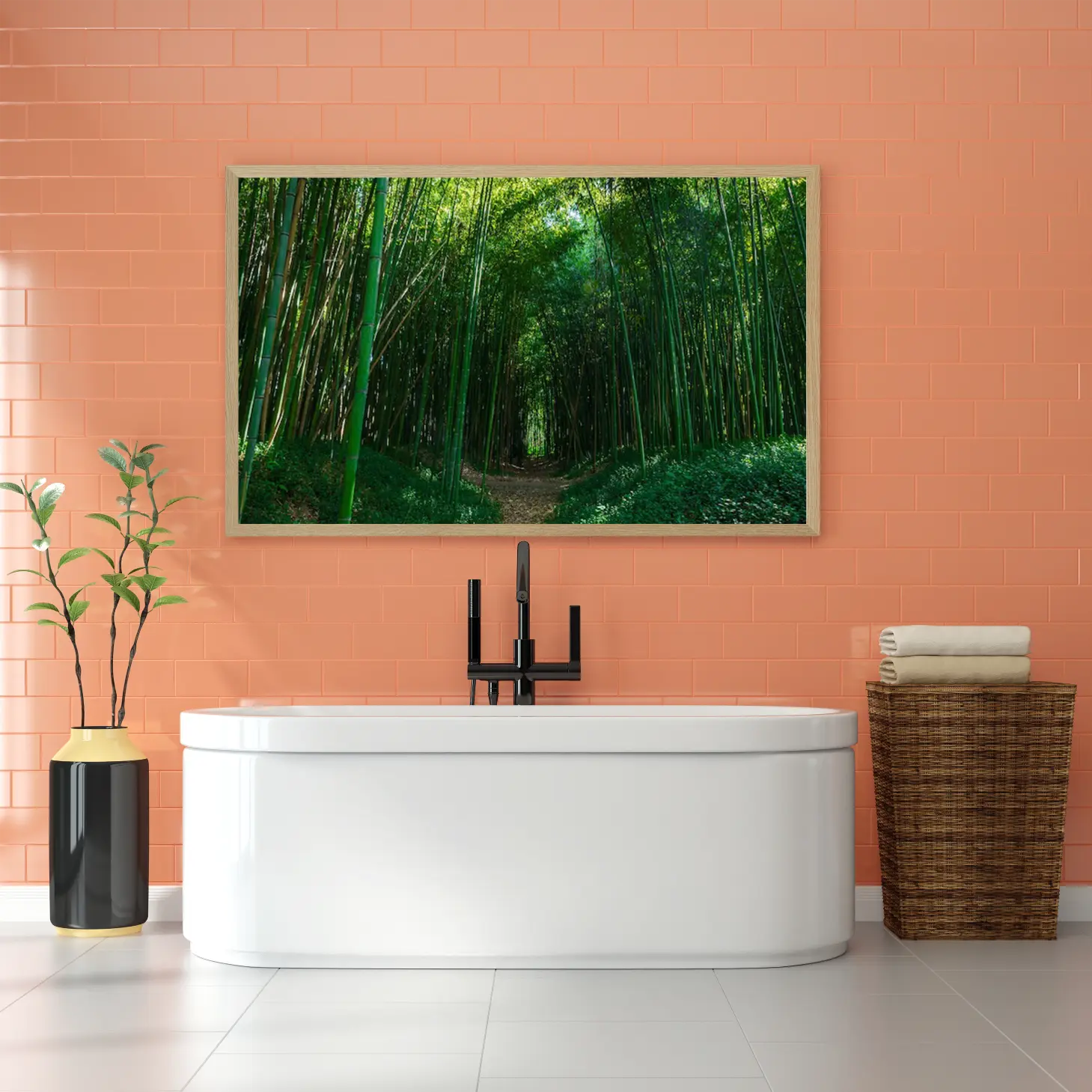 تجسد هذه اللوحة جمال الطبيعة الخلابة من خلال مشهد غابة من الخيزران، حيث تتعانق الأعمدة الخضراء في تناغم رائع، مما يخلق ممرًا ساحرًا يدعو للتأمل والاسترخاء. تعكس الألوان الزاهية والحيوية شعورًا بالسكينة والهدوء، مما يجعلها إضافة مثالية لأي مساحة ترغب في تعزيز أجواءها. إن تأثير هذه القطعة الفنية على المكان لا يقتصر على الجمال البصري فحسب، بل يمتد ليشمل تحسين نمط الحياة وإضفاء لمسة من الرقي.