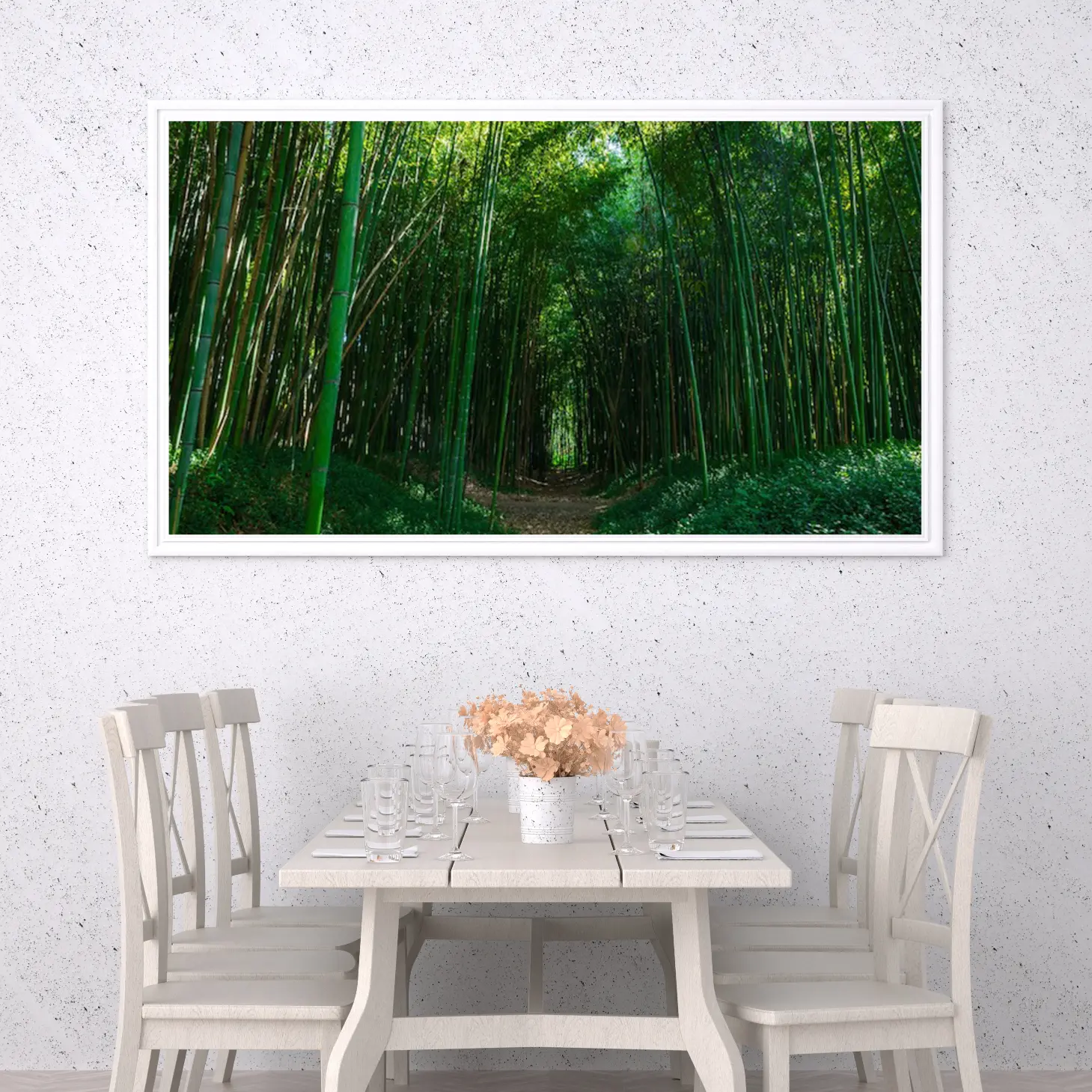 استمتع بجمال الطبيعة الخلابة مع هذه اللوحة الرائعة التي تأخذك في رحلة عبر غابة من الخيزران، حيث تتناغم درجات الأخضر في تنسيق مثالي يبعث على الهدوء والسكينة. متوفرة بمقاسات متعددة وإطارات أنيقة، تعد هذه اللوحة خيارًا راقياً يُقدَّم بثقة كهدية تعبر عن الذوق الرفيع في المناسبات الخاصة.