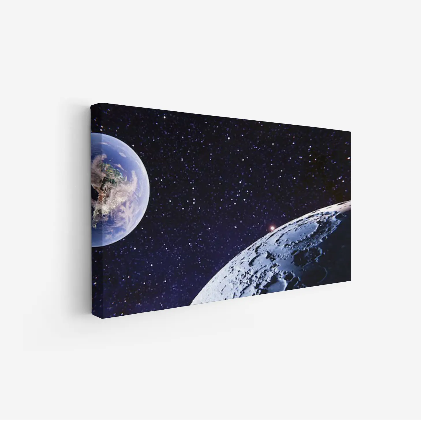 لوحة فضاء مذهل تظهر كوكب الأرض والقمر في خلفية مظلمة مليئة بالنجوم، مناظر طبيعية، لوحات فنية عصرية، لوحات جدارية للمنزل، لوحات أنيقة.