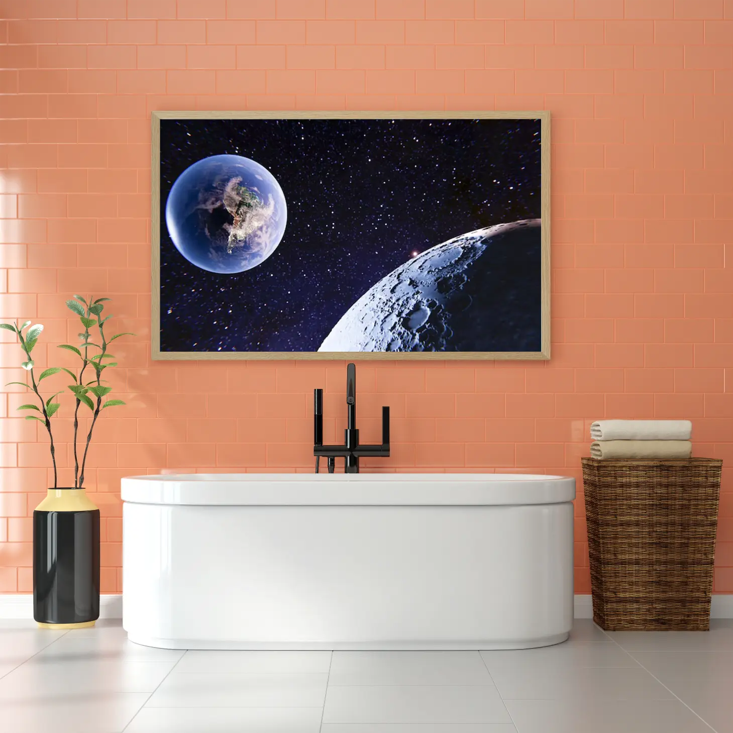 تُعد هذه اللوحات مناظر طبيعية فريدة، حيث تبرز كوكب الأرض والقمر في تناغم رائع، مما يجعلها قطعة فنية مثالية للمكاتب ومكاتب المنزل. يمكن استخدامها كعنصر جذب في المساحات التجارية أو كخلفية مميزة في الاجتماعات، مما يضفي طابعًا احترافيًا ومبتكرًا على المكان.
