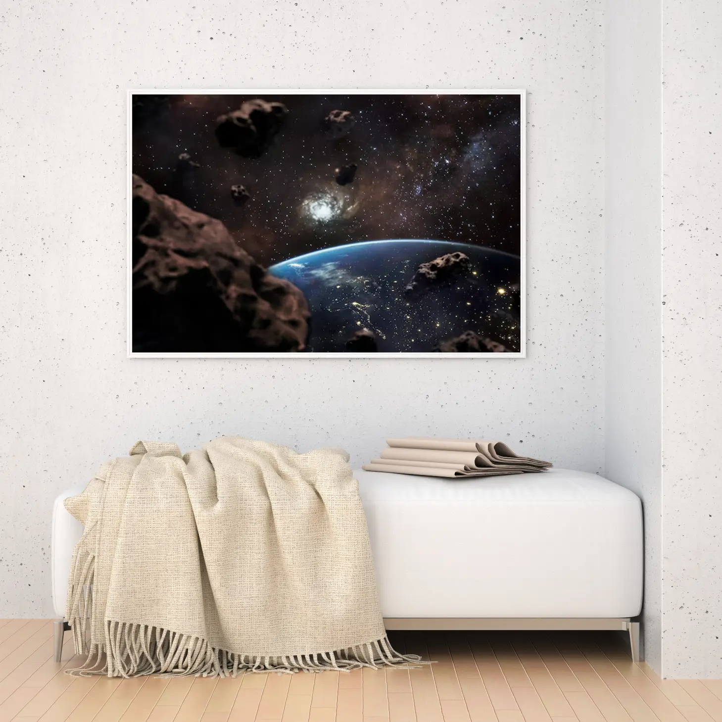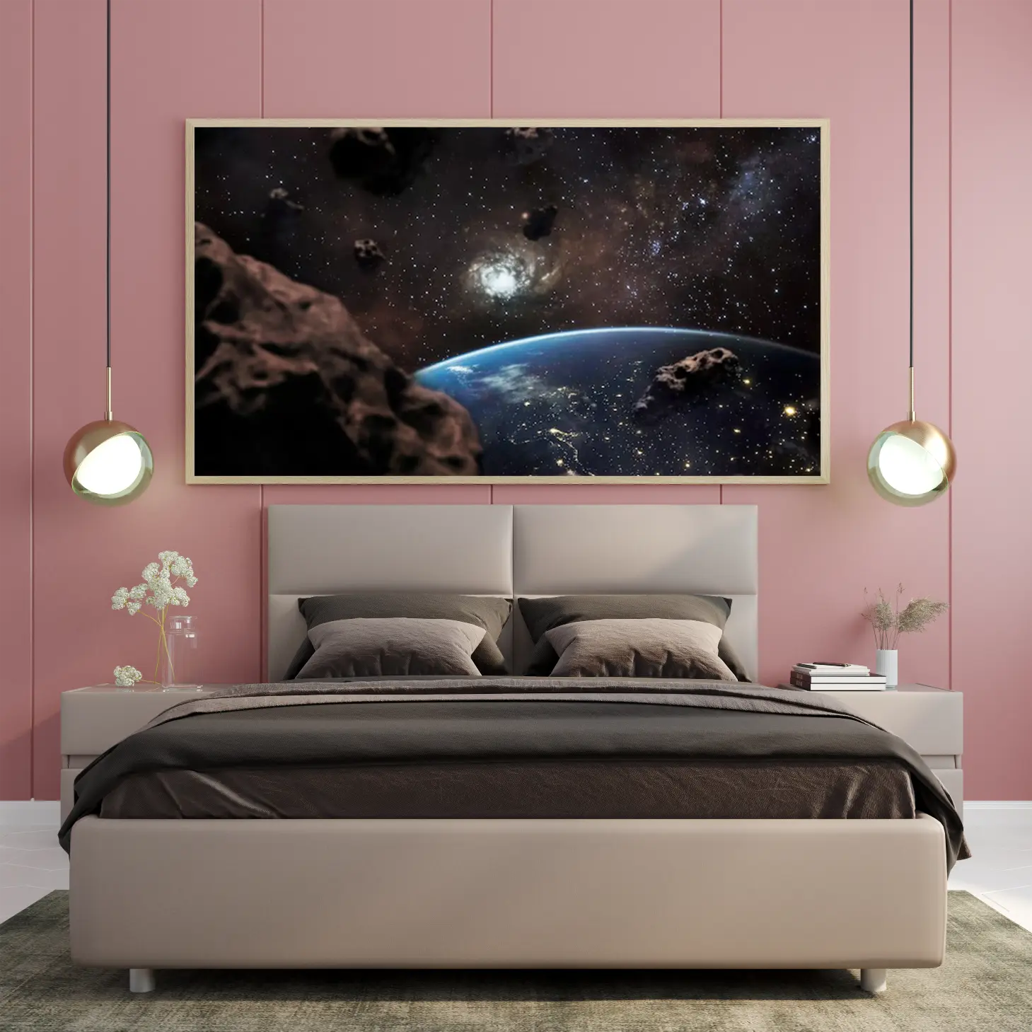 استمتع بجمال الكون مع هذه اللوحة الفنية المذهلة التي تأخذك في رحلة عبر الفضاء. تفاصيل الكواكب والنجوم تخلق تجربة بصرية فريدة، مما يجعلها إضافة مثالية لأي مساحة تبحث عن لمسة من الإلهام والخيال. اجعل من جدرانك نافذة إلى عوالم جديدة.