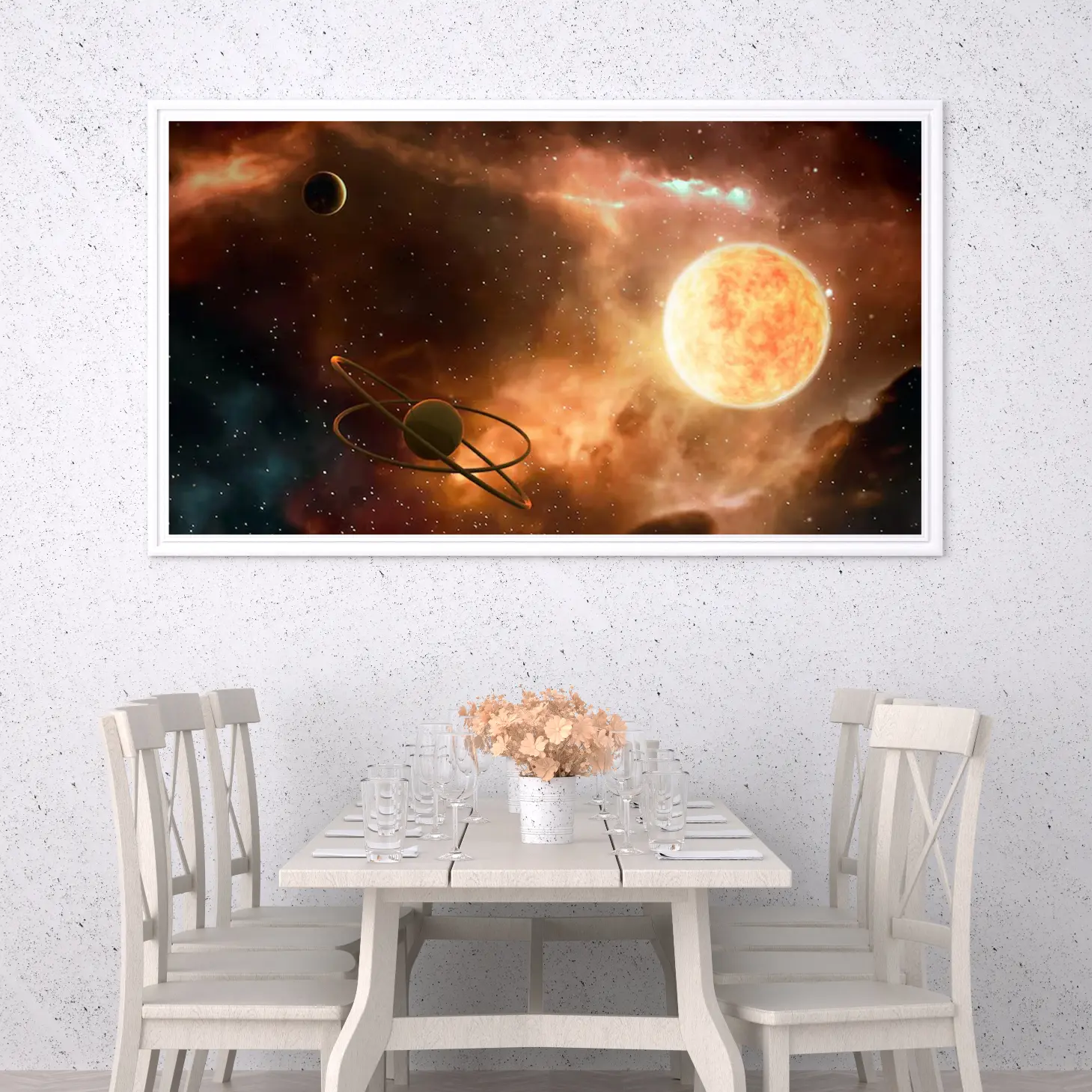 استمتع بجمال الكون مع هذه اللوحة الفنية الرائعة التي تجسد عظمة الفضاء. الألوان الزاهية والتفاصيل الدقيقة تأخذك في رحلة بصرية إلى عوالم بعيدة، مما يجعلها إضافة مثالية لأي مساحة تبحث عن لمسة من الإلهام والخيال. اجعل من جدرانك نافذة إلى الكون الواسع.