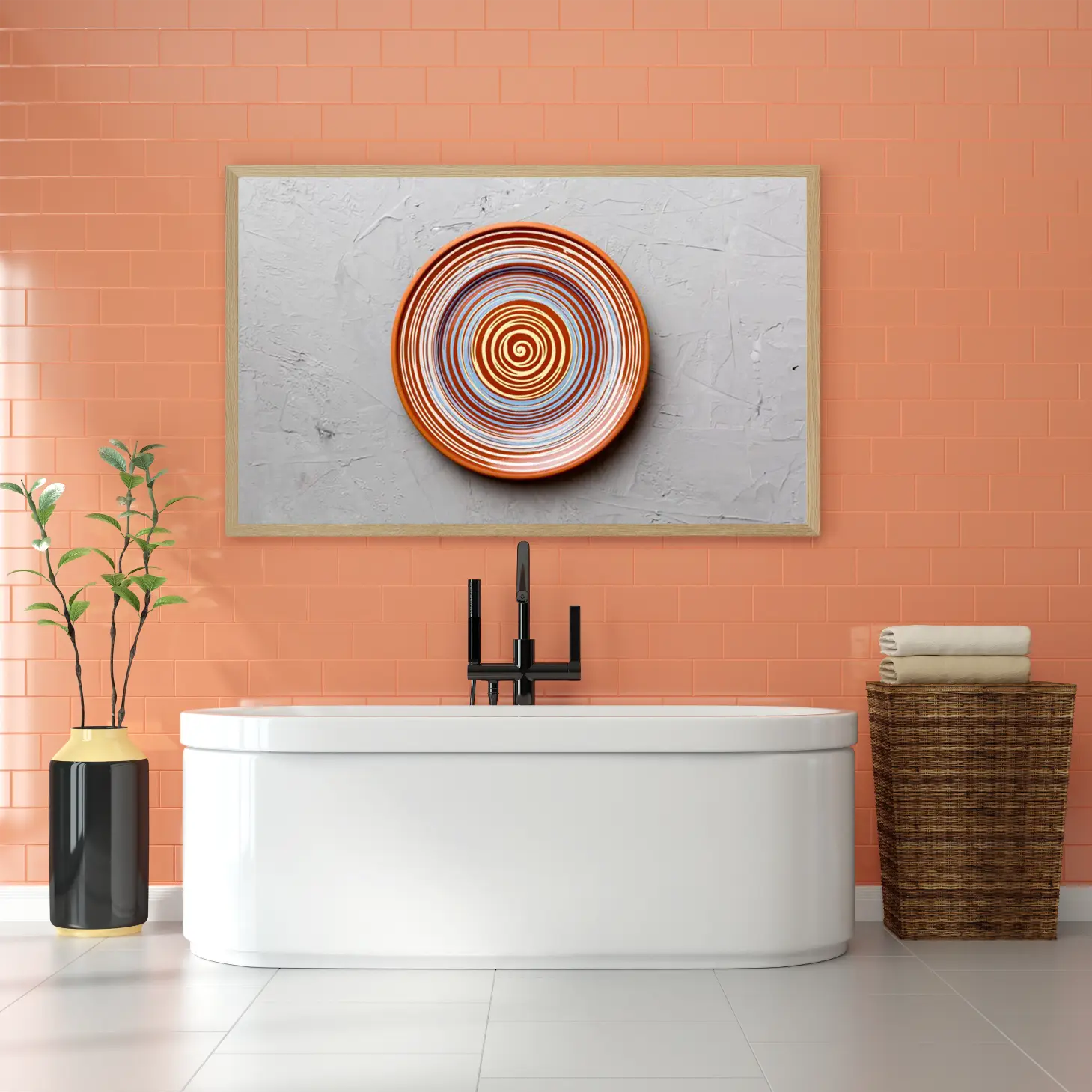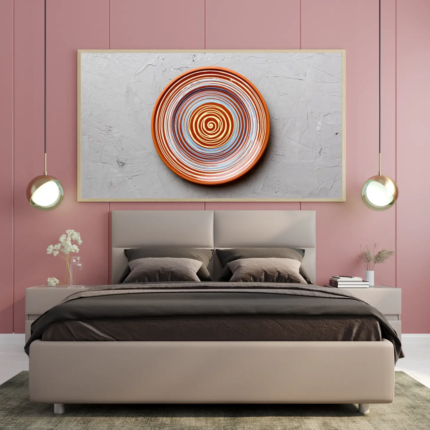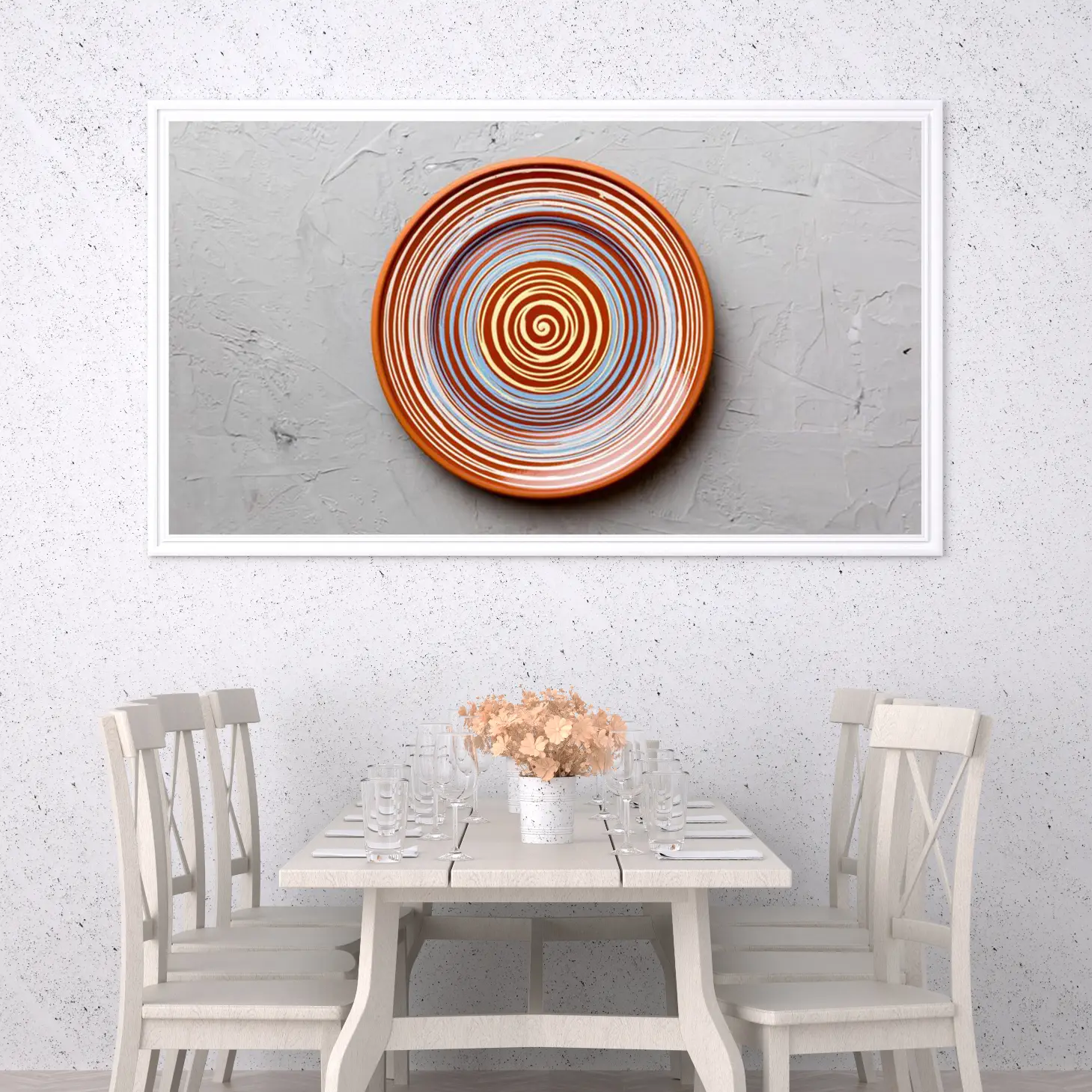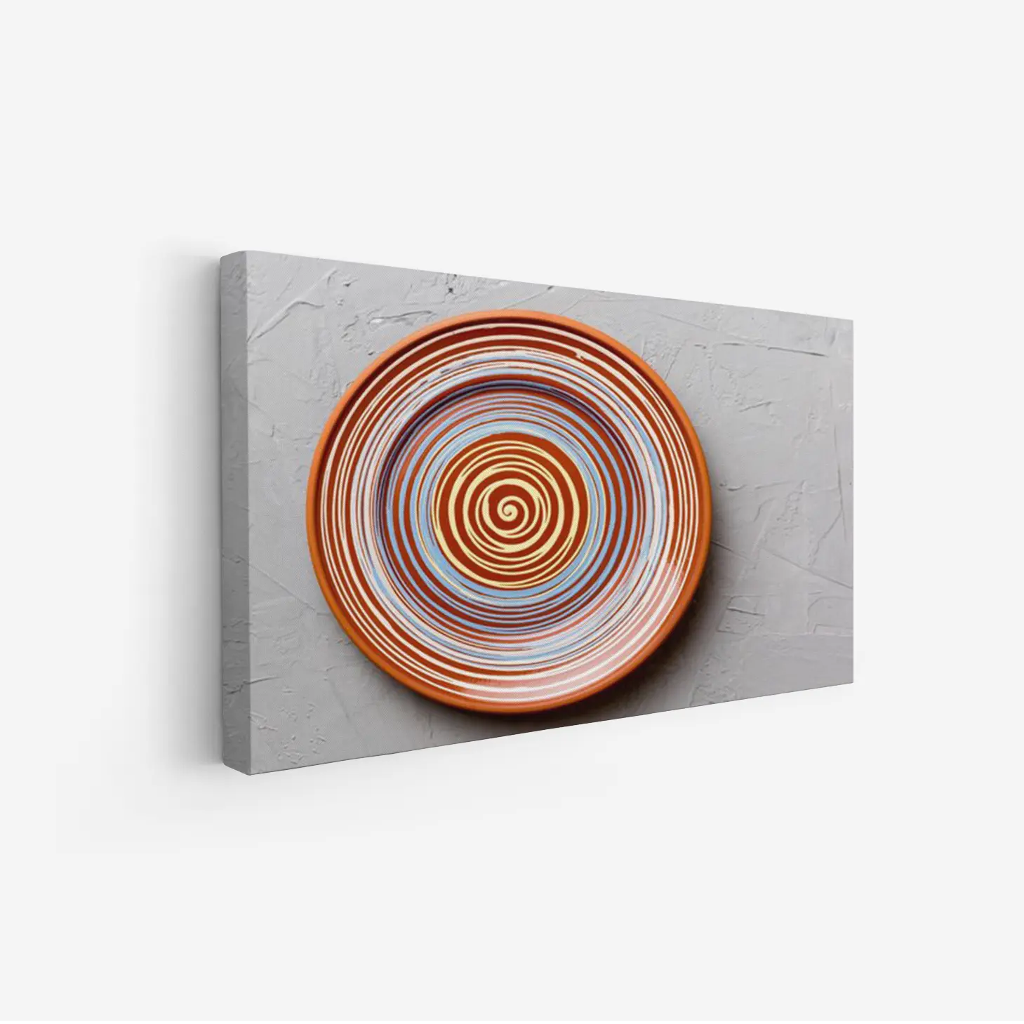 تتجلى في هذه اللوحة الفنية جماليات فريدة تعكس روح الإبداع والتفرد. يظهر في وسطها طبق مزخرف بألوان دافئة تتداخل بشكل متناغم، مما يضفي إحساسًا بالدفء والراحة على المكان. تساهم الألوان المتنوعة في خلق جو من الحيوية، مما يجعلها خيارًا مثاليًا لإضفاء لمسة من الأناقة على أي مساحة. إن هذه القطعة ليست مجرد عنصر ديكور، بل هي تعبير عن أسلوب حياة يعكس الذوق الرفيع.