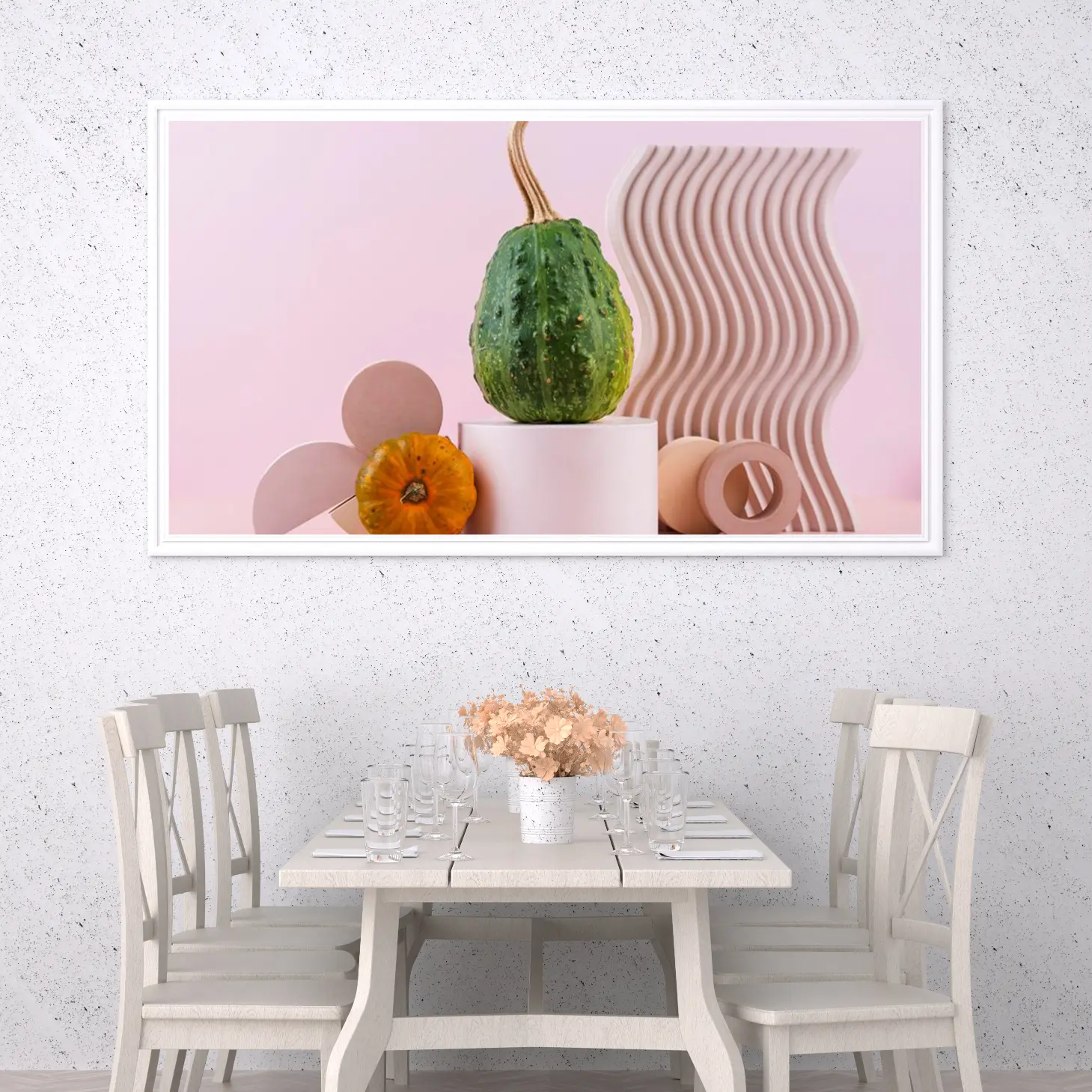 لوحة فواكه – قرع أخضر – خلفية وردية – مبهجة – لوحات فنية مودرن – لوحات كانفاس