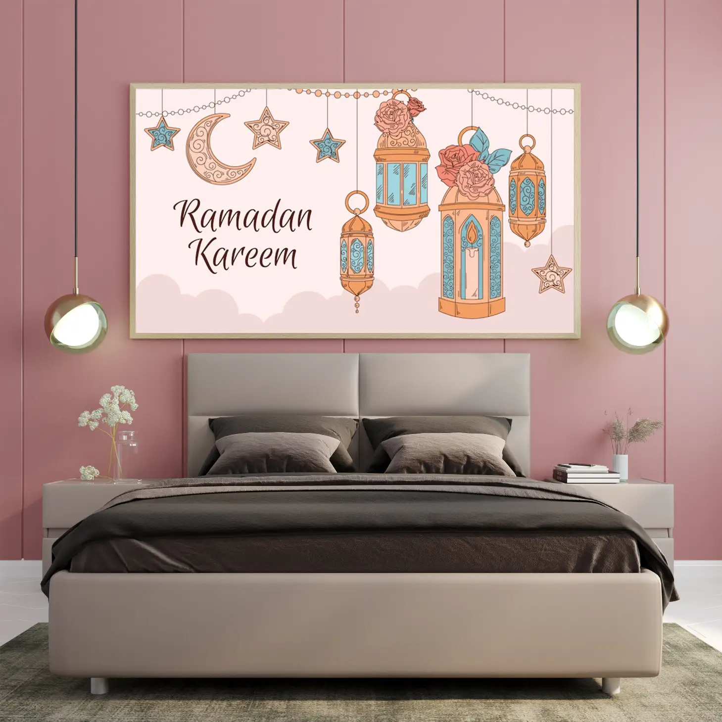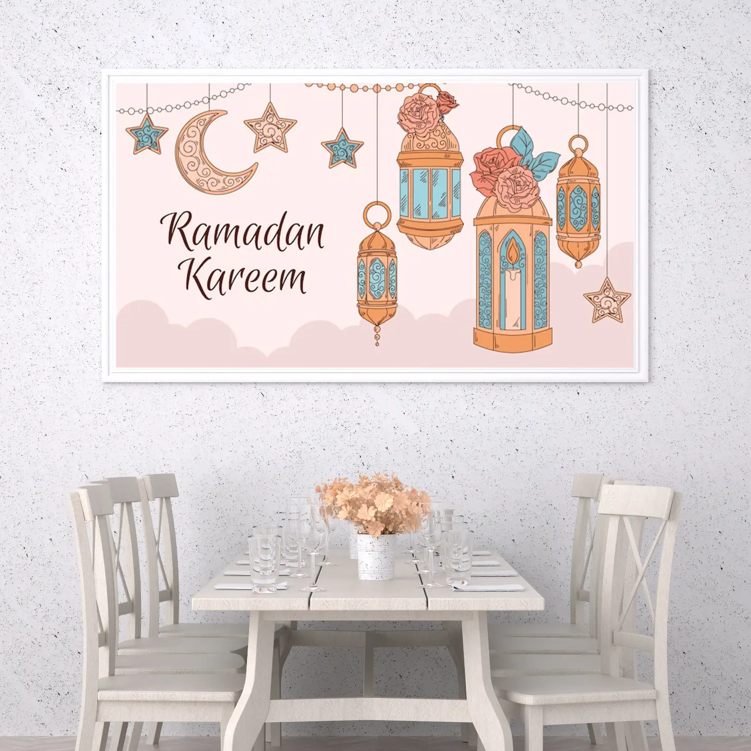 حوّل أجواء منزلك في رمضان إلى مساحة مليئة بالسكينة والروحانية مع لوحة كانفاس رمضانية فاخرة تجمع بين الذوق العصري واللمسة الإسلامية الهادئة. هذه اللوحة مصممة لتكون قطعة ديكور لافتة ولكن ناعمة في نفس الوقت، تناسب ديكور رمضان في الصالة، المجلس، الممرات، أو غرفة الطعام، وتضيف إحساسًا دافئًا مع الإضاءة المنزلية.