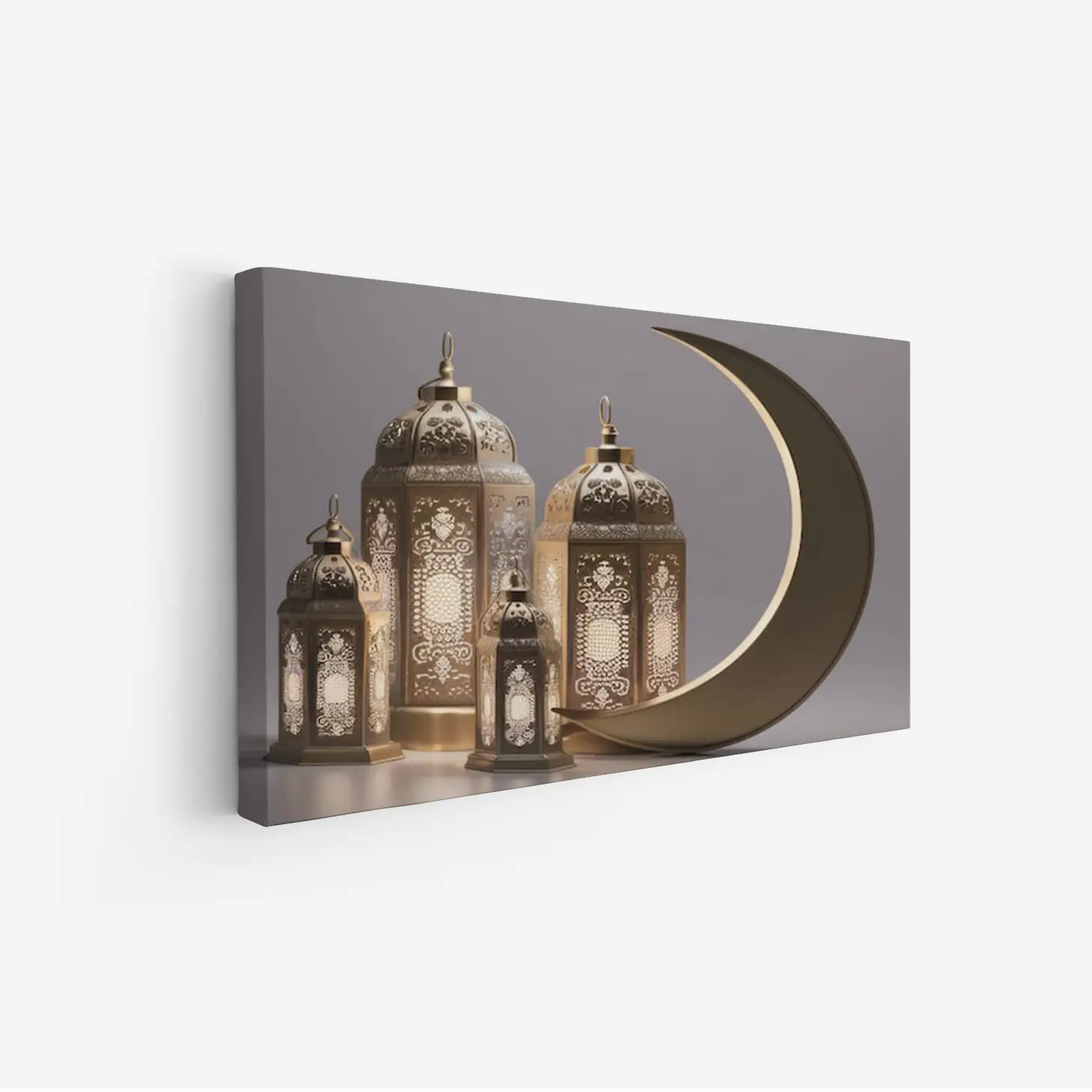 لوحة كانفاس رمضانية بتصميم روحاني أنيق تضيف أجواء رمضان للمنزل. جودة طباعة عالية وألوان ثابتة تناسب الصالة والمجلس وغرفة الطعام — خيار جميل للديكور أو كهدية رمضانية.