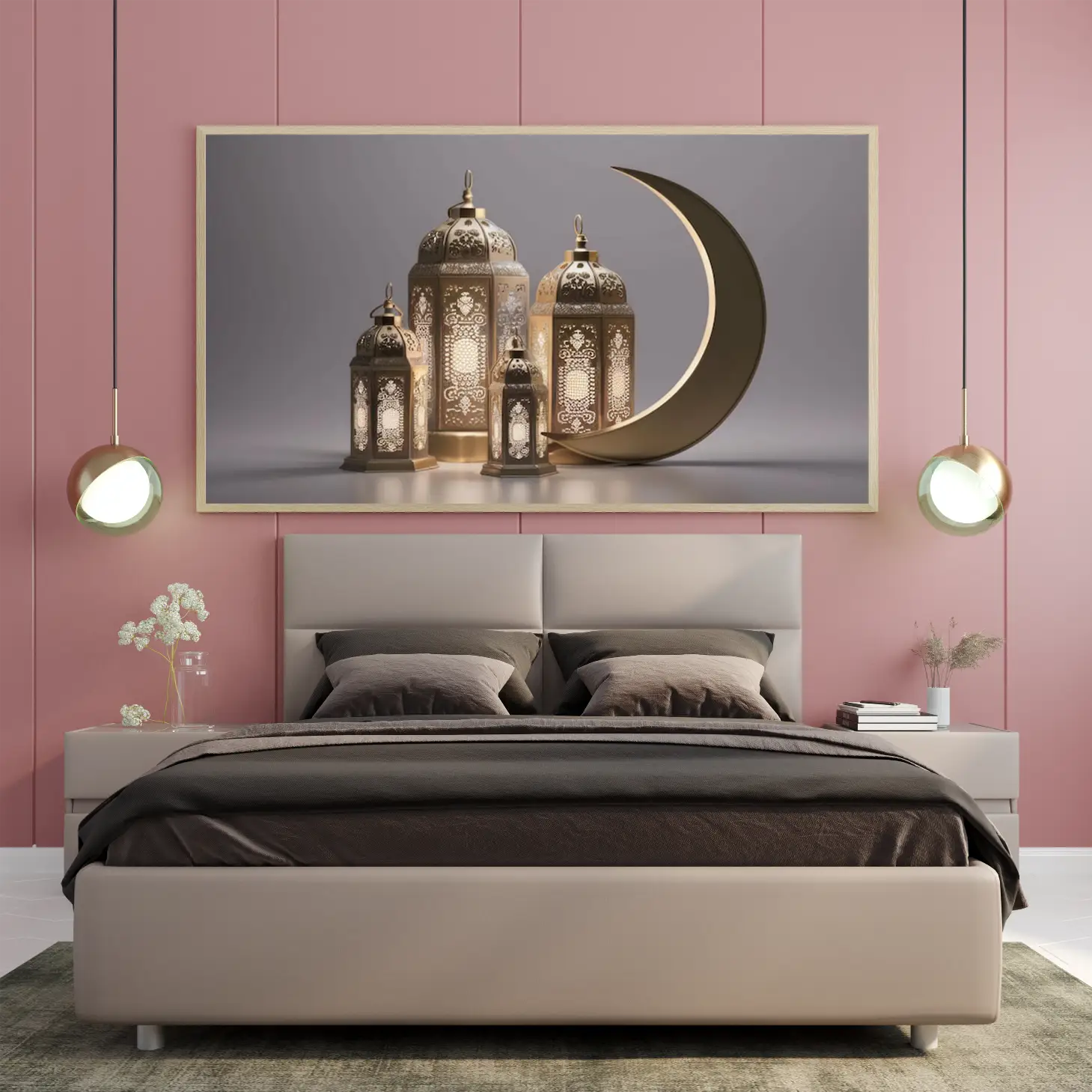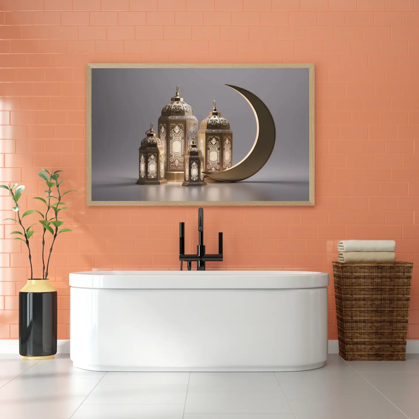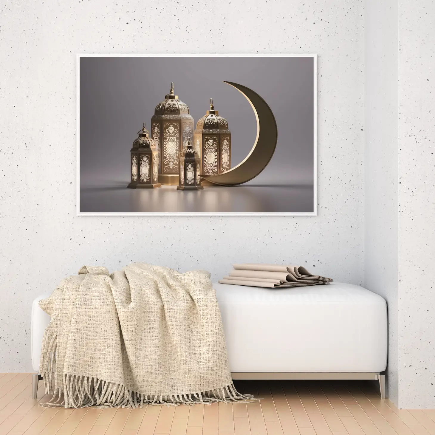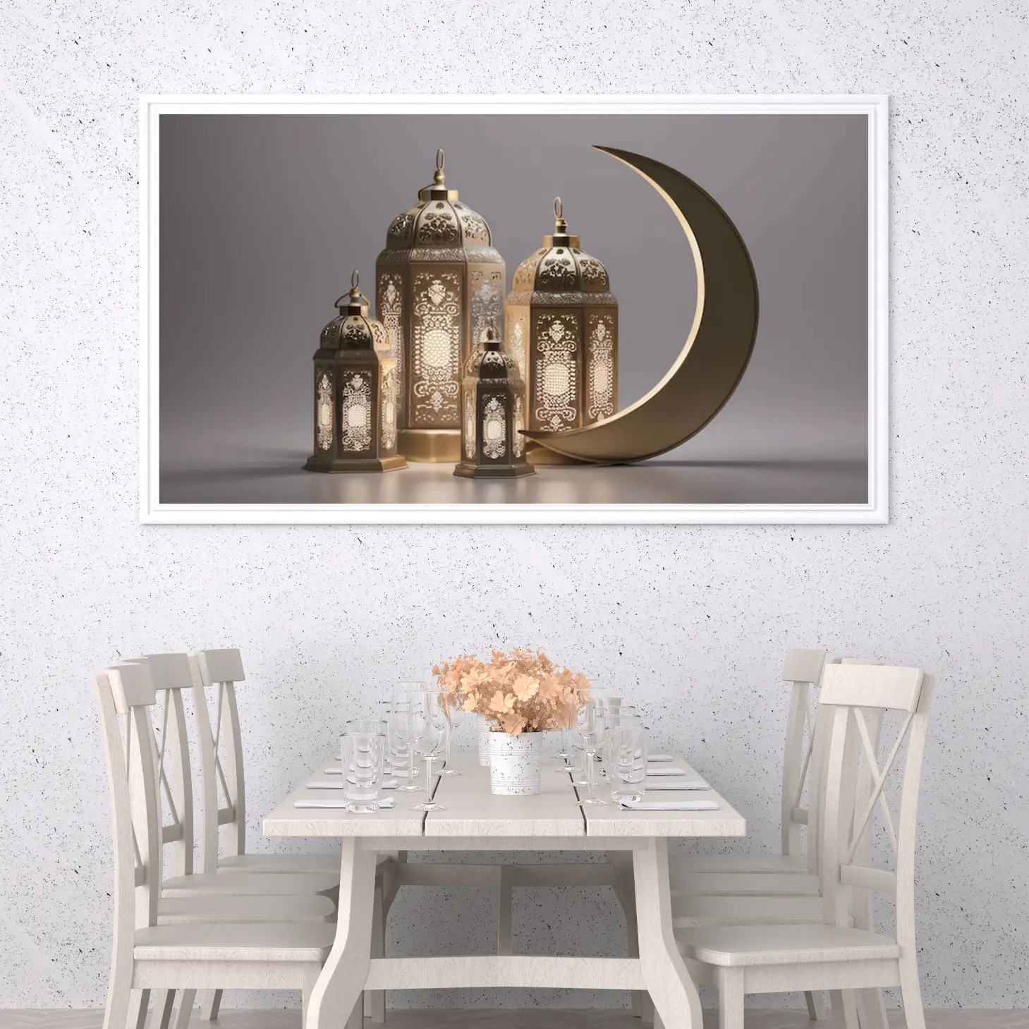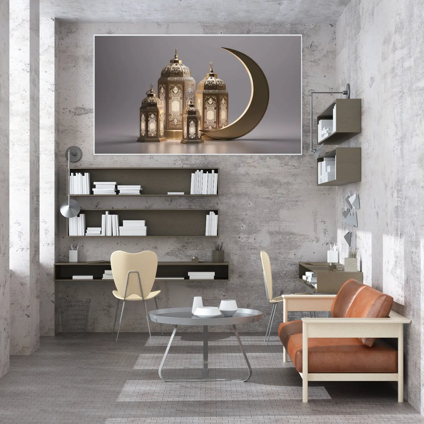 حوّل أجواء منزلك في رمضان إلى مساحة مليئة بالسكينة والروحانية مع لوحة كانفاس رمضانية فاخرة تجمع بين الذوق العصري واللمسة الإسلامية الهادئة. هذه اللوحة مصممة لتكون قطعة ديكور لافتة ولكن ناعمة في نفس الوقت، تناسب ديكور رمضان في الصالة، المجلس، الممرات، أو غرفة الطعام، وتضيف إحساسًا دافئًا مع الإضاءة المنزلية.