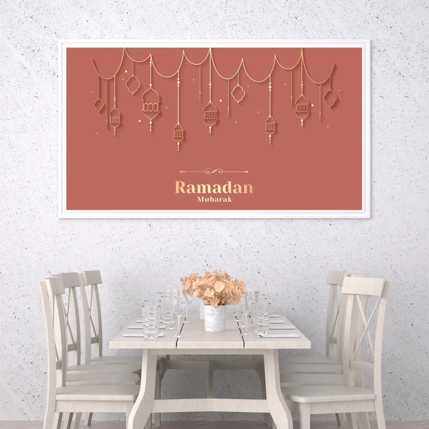 حوّل أجواء منزلك في رمضان إلى مساحة مليئة بالسكينة والروحانية مع لوحة كانفاس رمضانية فاخرة تجمع بين الذوق العصري واللمسة الإسلامية الهادئة. هذه اللوحة مصممة لتكون قطعة ديكور لافتة ولكن ناعمة في نفس الوقت، تناسب ديكور رمضان في الصالة، المجلس، الممرات، أو غرفة الطعام، وتضيف إحساسًا دافئًا مع الإضاءة المنزلية.