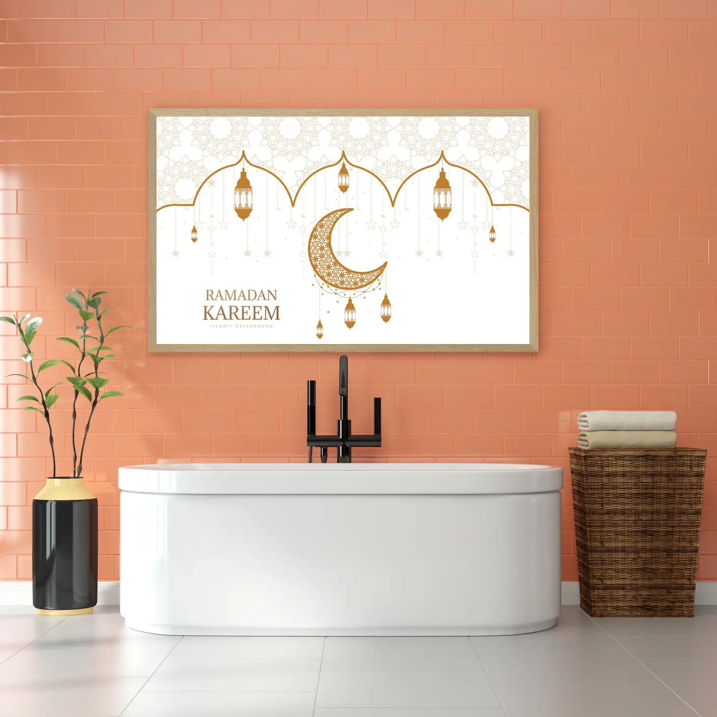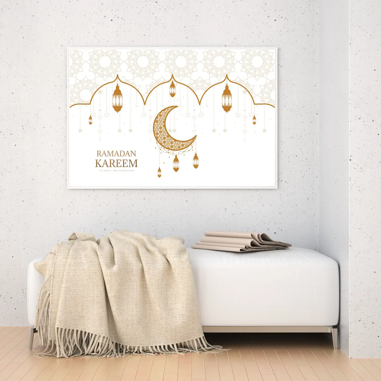 لوحة كانفاس رمضانية بتصميم روحاني أنيق تضيف أجواء رمضان للمنزل. جودة طباعة عالية وألوان ثابتة تناسب الصالة والمجلس وغرفة الطعام — خيار جميل للديكور أو كهدية رمضانية.