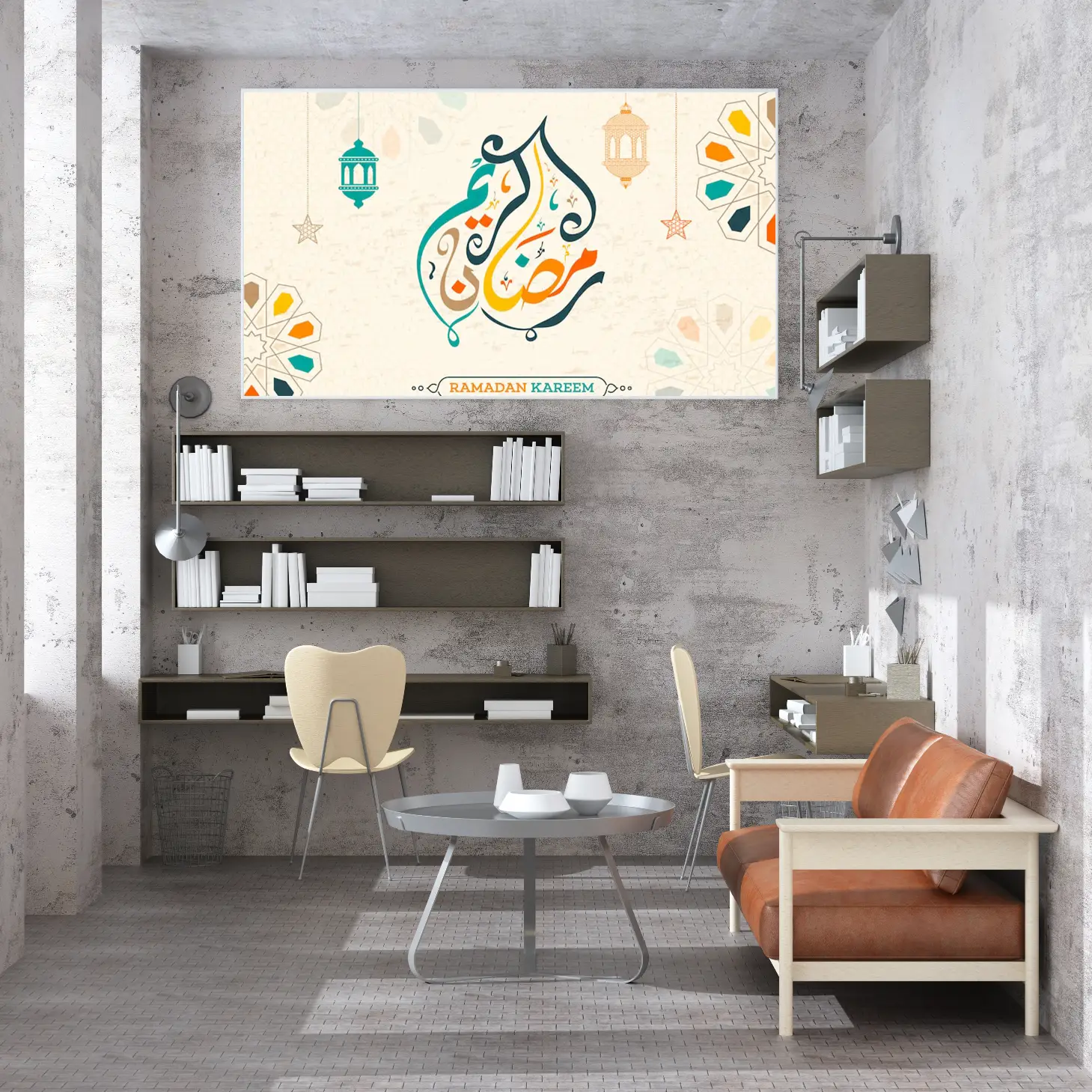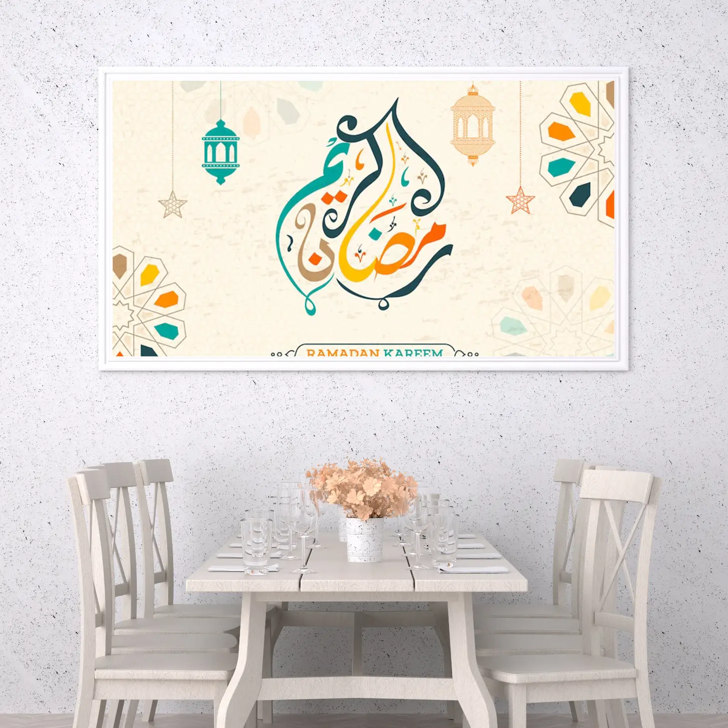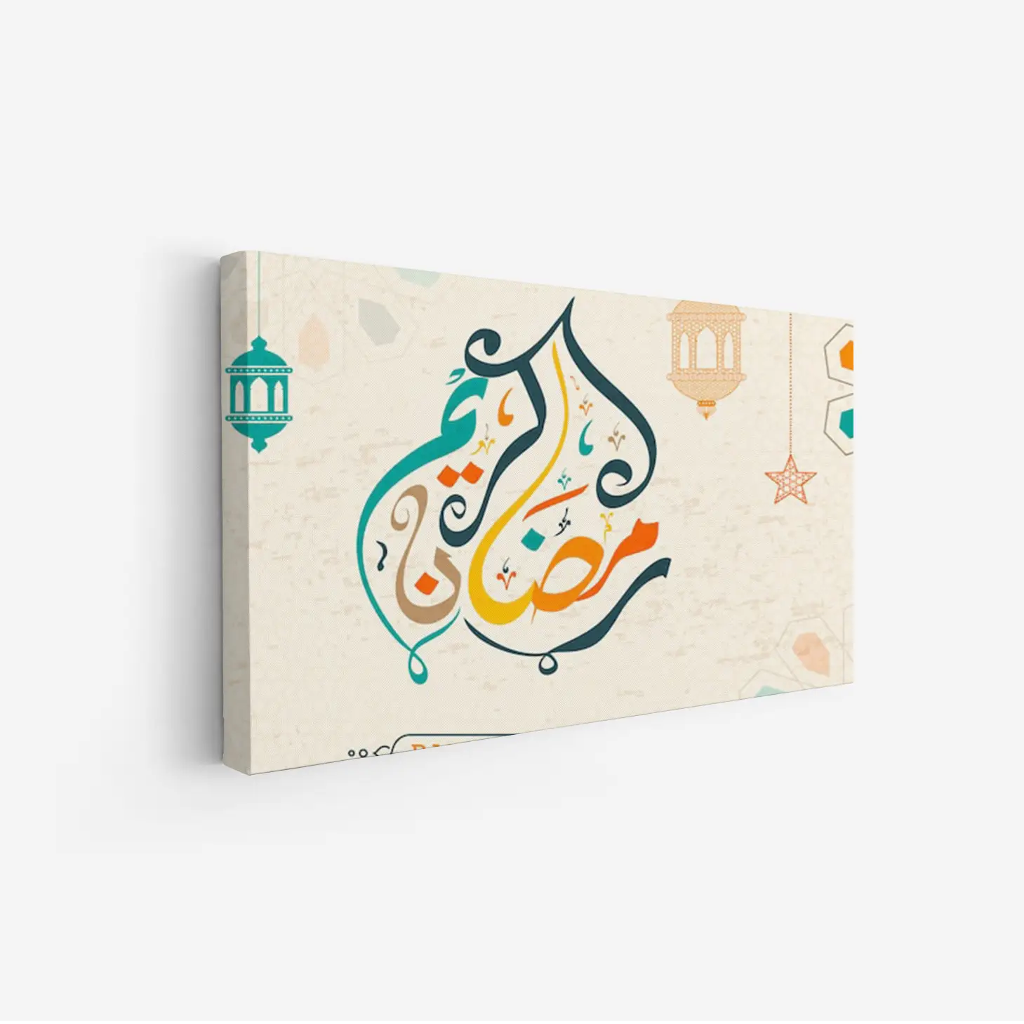 لوحة كانفاس رمضانية بتصميم روحاني أنيق تضيف أجواء رمضان للمنزل. جودة طباعة عالية وألوان ثابتة تناسب الصالة والمجلس وغرفة الطعام — خيار جميل للديكور أو كهدية رمضانية.