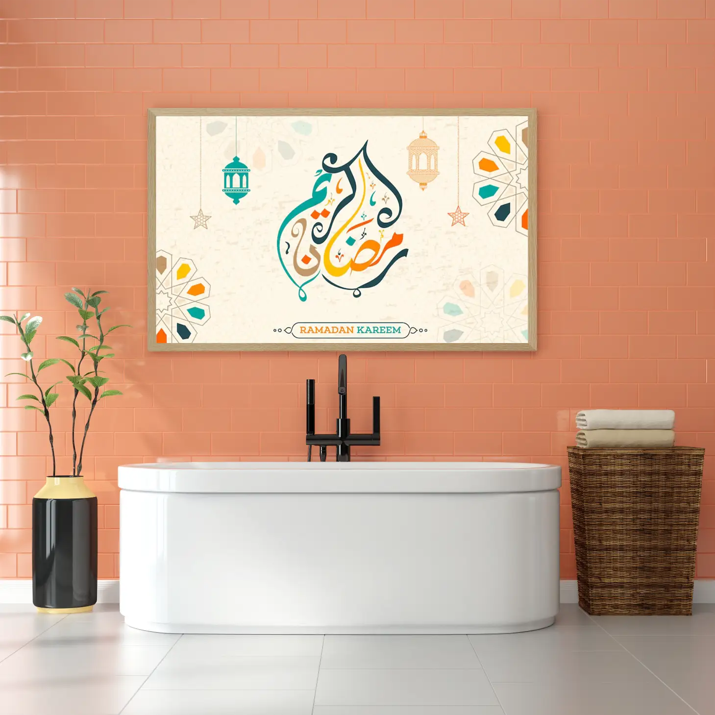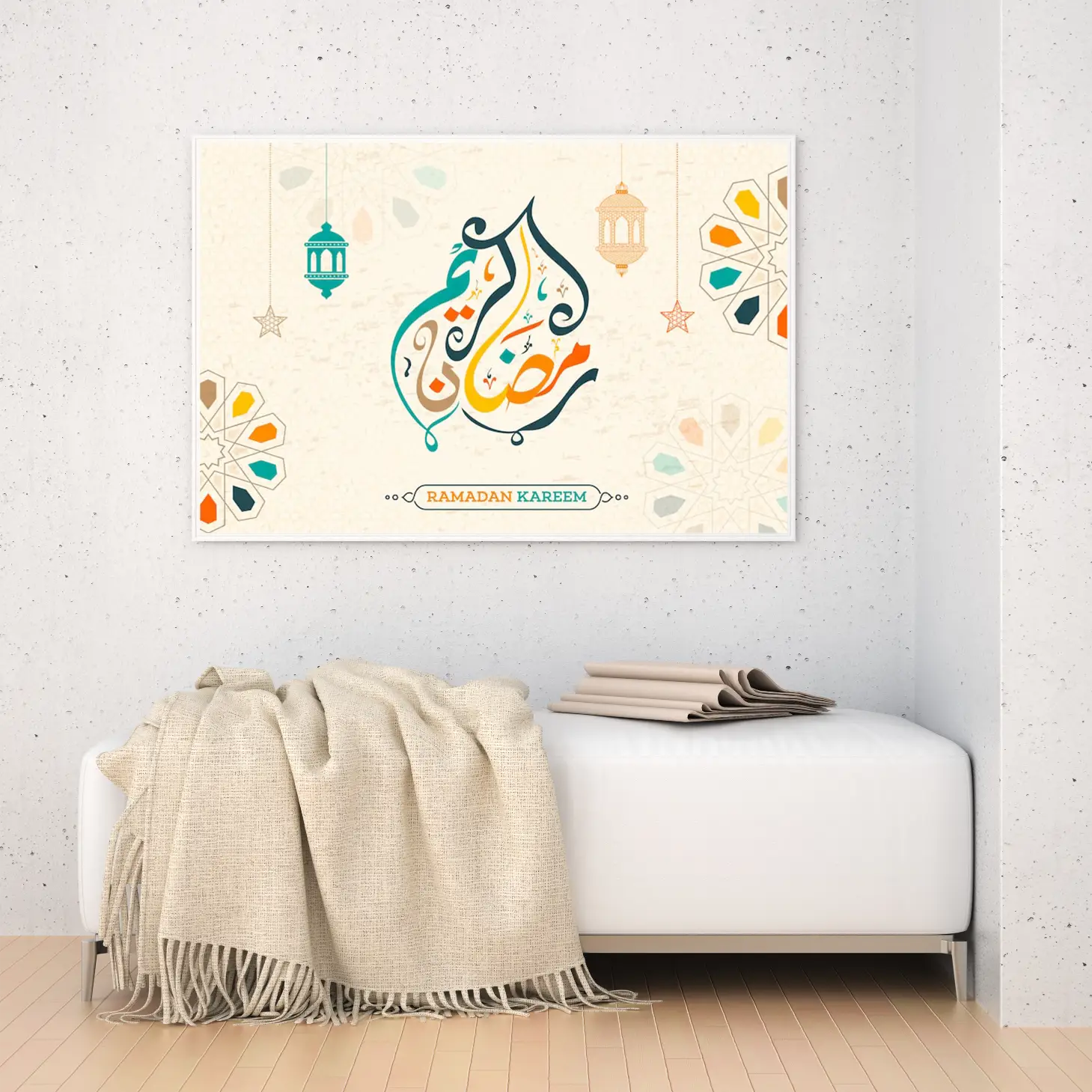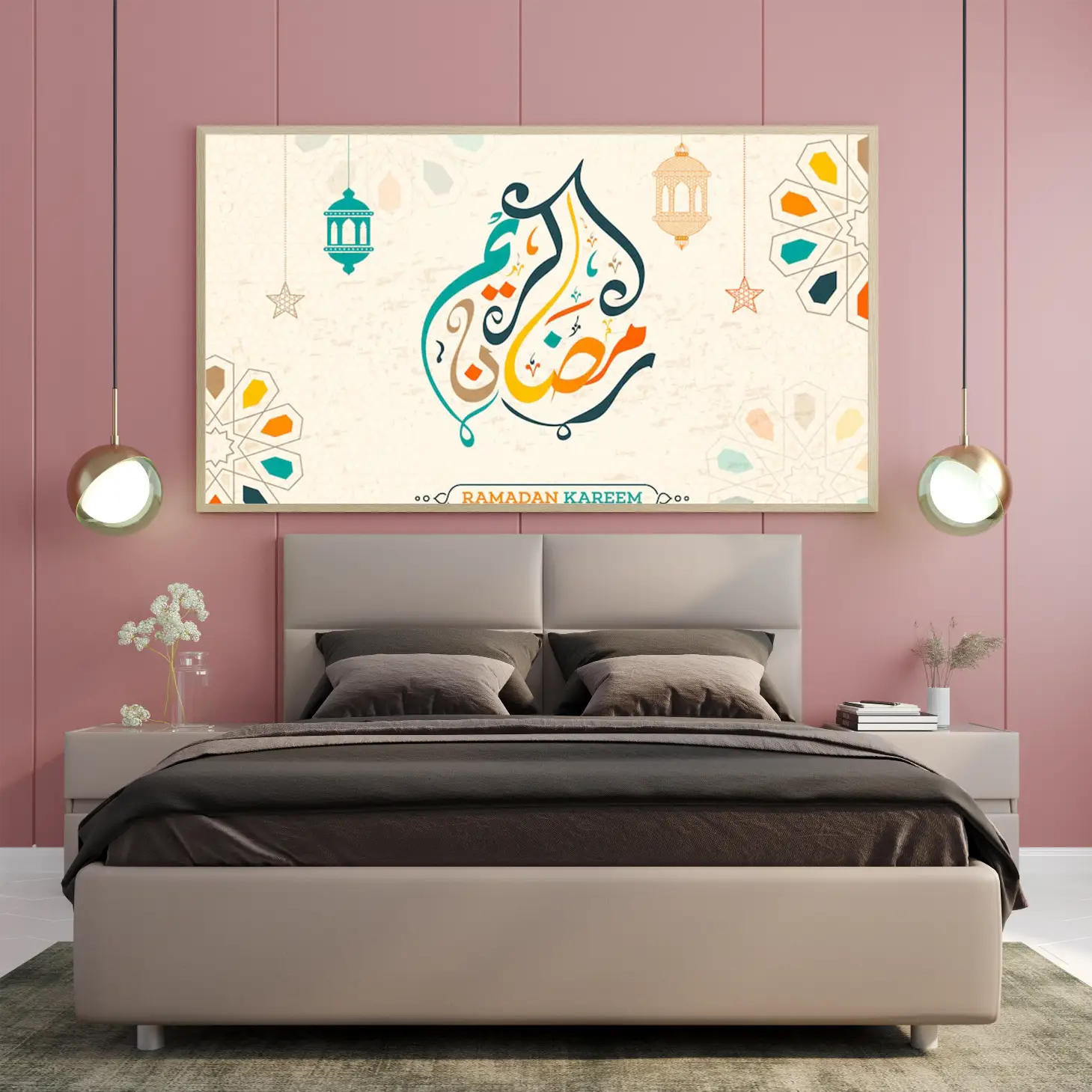 لوحة كانفاس رمضانية بتصميم روحاني أنيق تضيف أجواء رمضان للمنزل. جودة طباعة عالية وألوان ثابتة تناسب الصالة والمجلس وغرفة الطعام — خيار جميل للديكور أو كهدية رمضانية.
