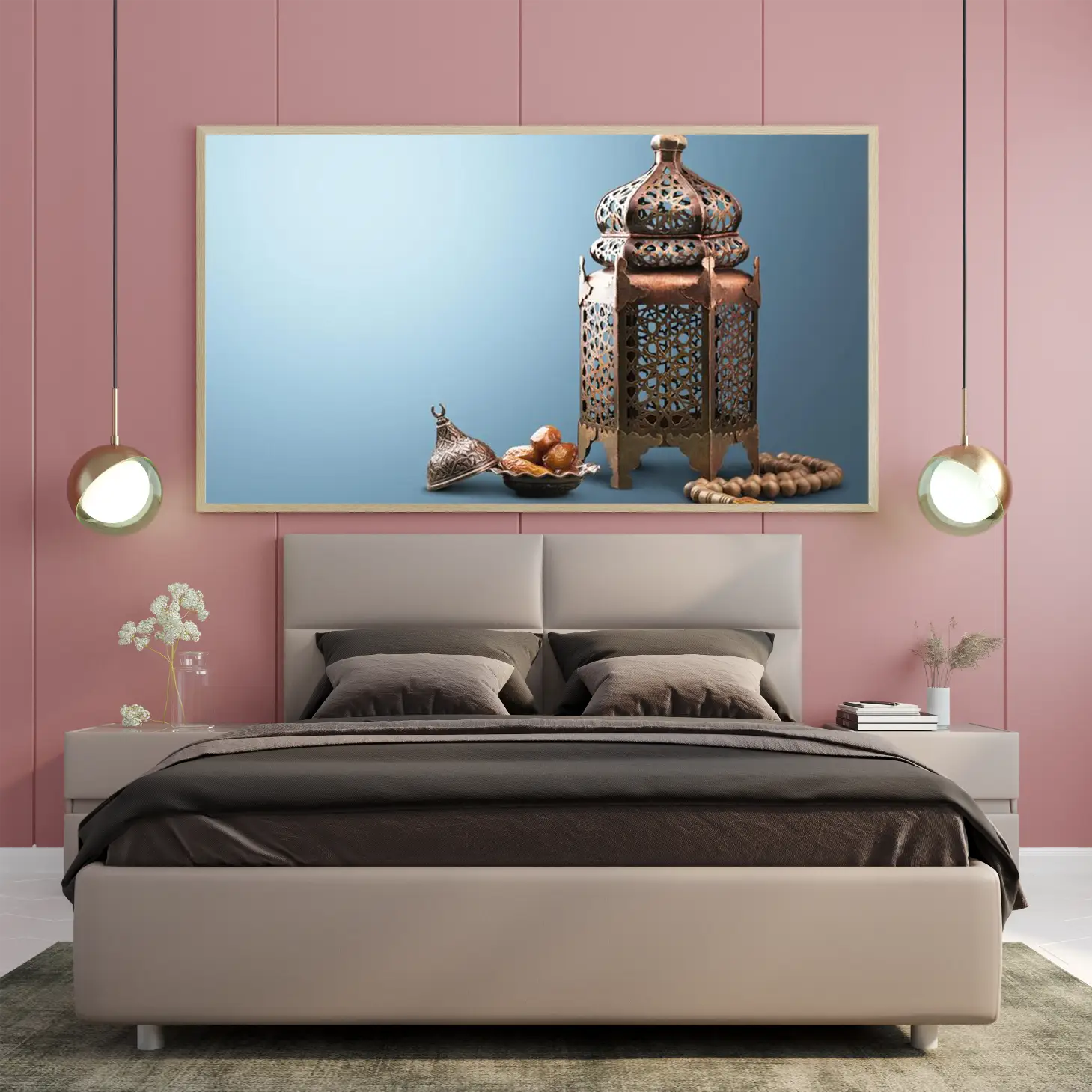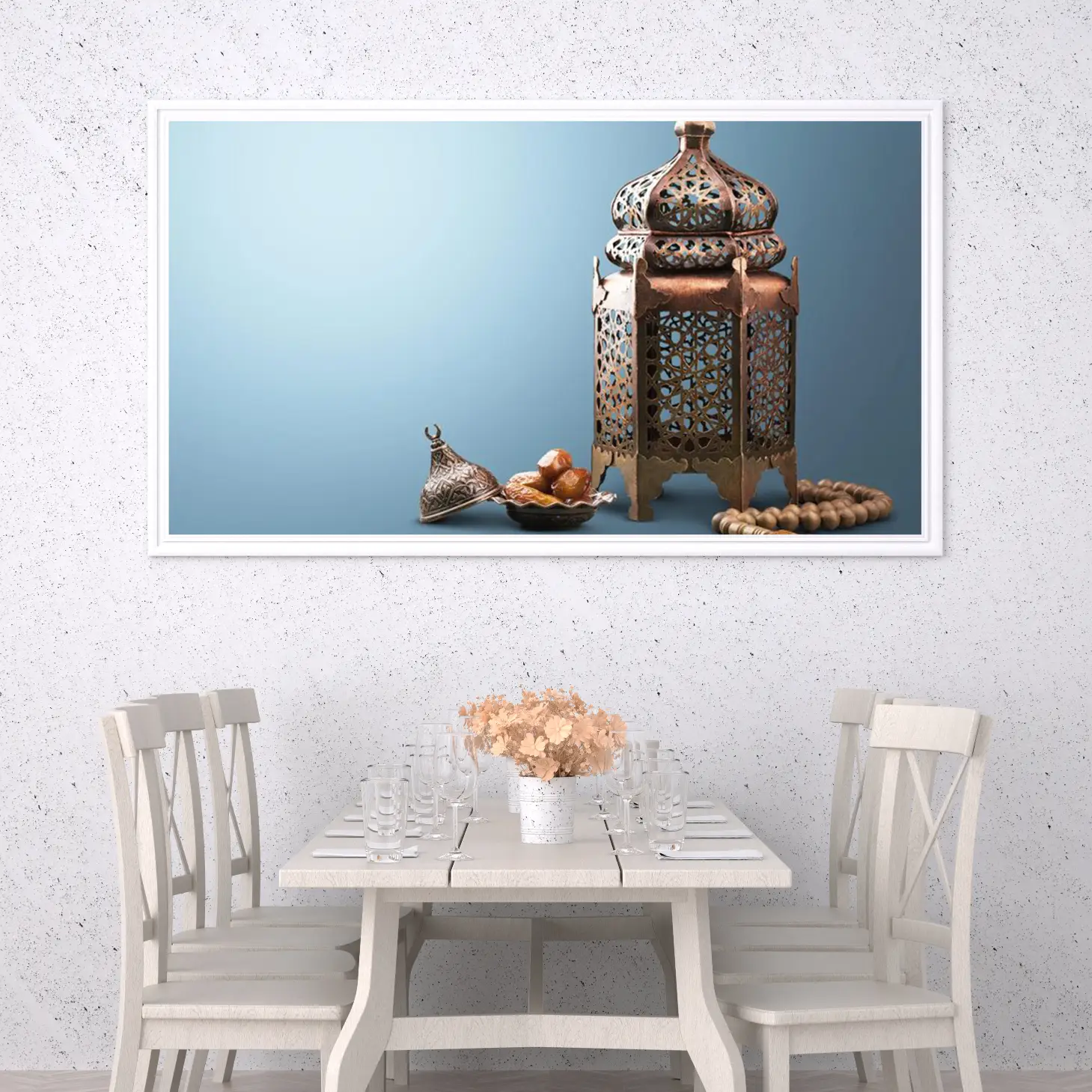 حوّل أجواء منزلك في رمضان إلى مساحة مليئة بالسكينة والروحانية مع لوحة كانفاس رمضانية فاخرة تجمع بين الذوق العصري واللمسة الإسلامية الهادئة. هذه اللوحة مصممة لتكون قطعة ديكور لافتة ولكن ناعمة في نفس الوقت، تناسب ديكور رمضان في الصالة، المجلس، الممرات، أو غرفة الطعام، وتضيف إحساسًا دافئًا مع الإضاءة المنزلية.