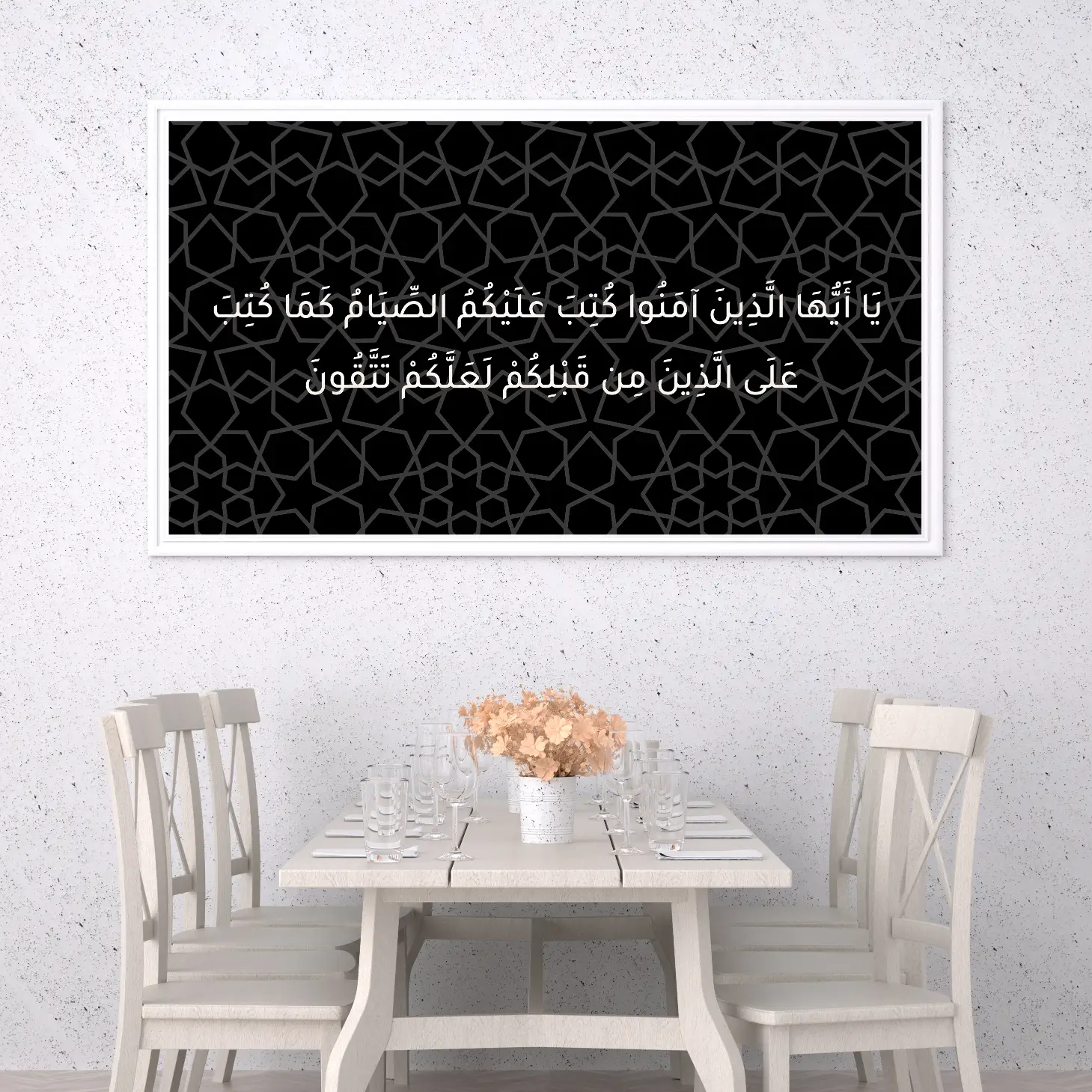 لوحة كانفاس رمضانية بتصميم روحاني أنيق تضيف أجواء رمضان للمنزل. جودة طباعة عالية وألوان ثابتة تناسب الصالة والمجلس وغرفة الطعام — خيار جميل للديكور أو كهدية رمضانية.