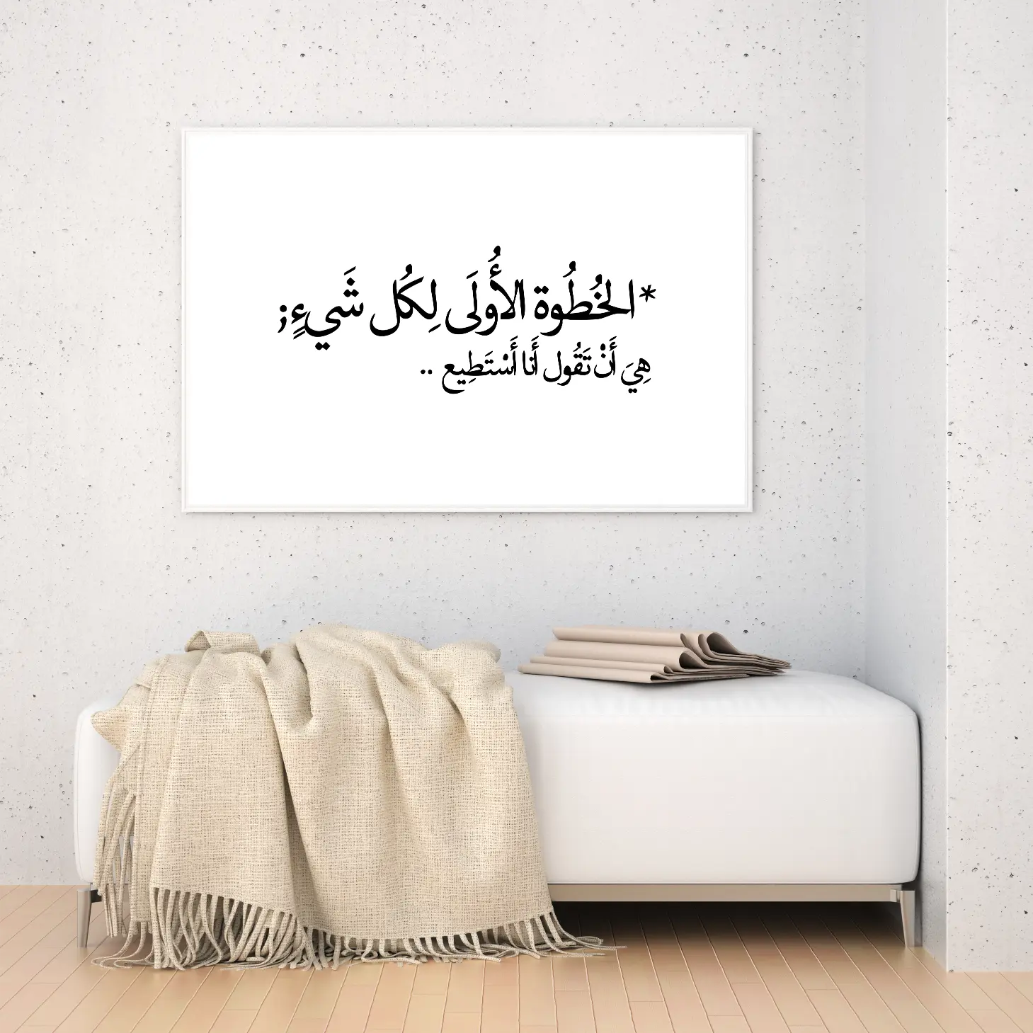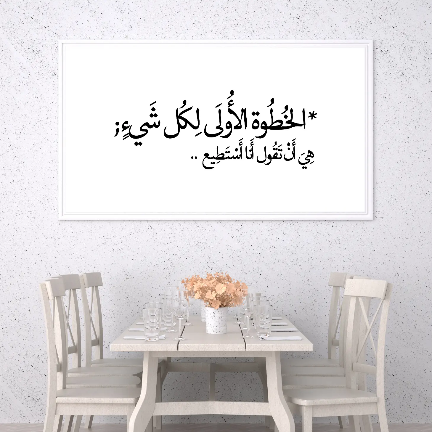 تضفي هذه اللوحة لمسة من الإلهام والعمق على أي مساحة، حيث تحمل عبارة “الخطوة الأولى لكل شيء هي أن تقول أنا أستطيع” التي تعكس روح التفاؤل والعزيمة. تبرز الألوان الهادئة والخلفية البيضاء بساطة وأناقة، مما يجعلها خيارًا مثاليًا لإضفاء جو من الإيجابية على المكان. يمكن أن تكون هذه القطعة الفنية نقطة محورية في أي غرفة، مما يعزز من نمط الحياة العصري ويجعلها ملاذًا للراحة والتفكير.