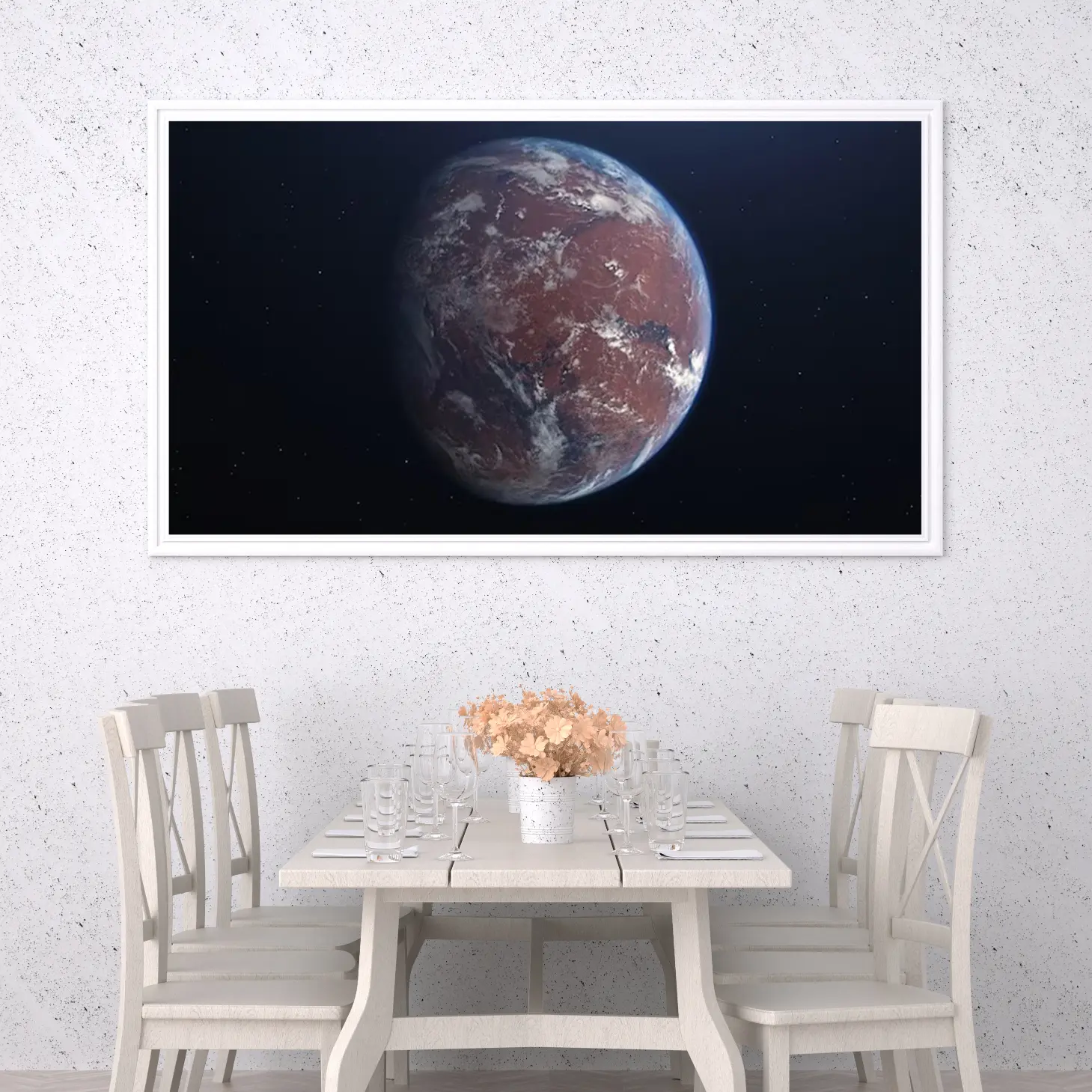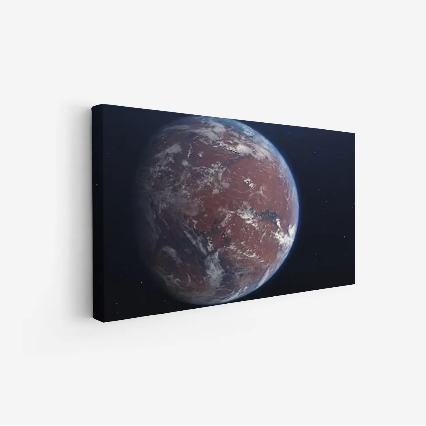 لوحة كوكب أحمر مع تفاصيل سطحه، ألوان دافئة وزرقة السماء، جو فضائي مدهش، مناظر طبيعية، لوحات فنية عصرية، لوحات جدارية للمنزل.