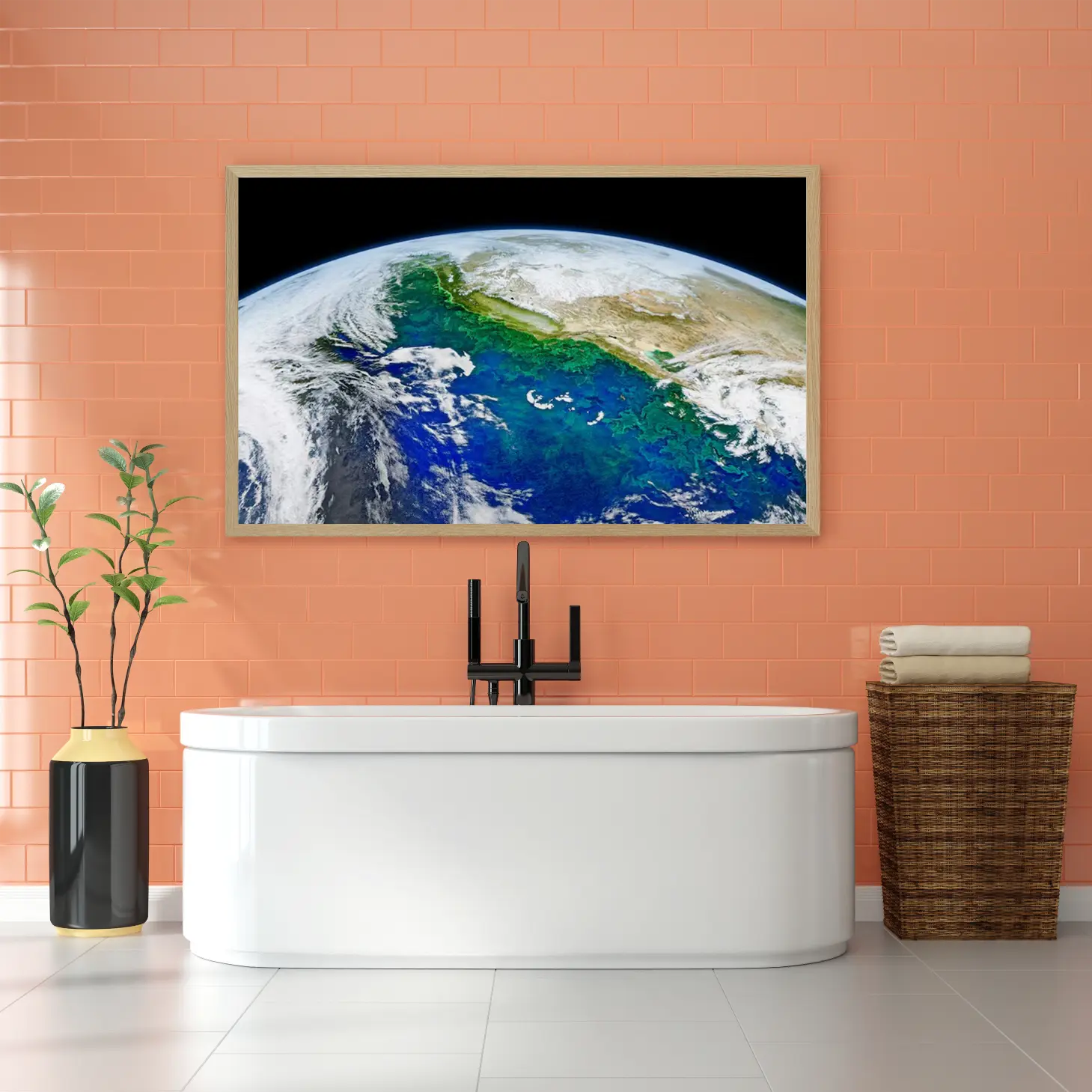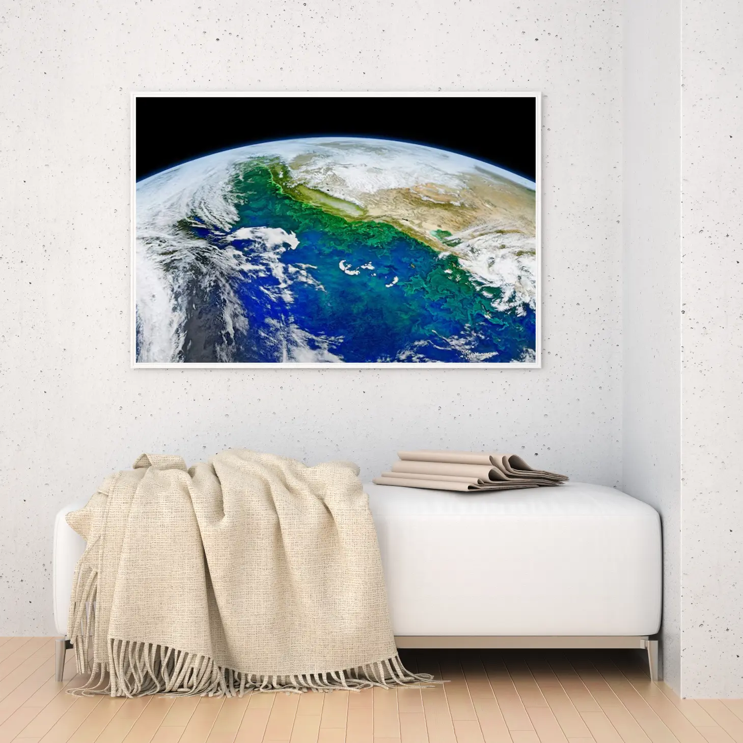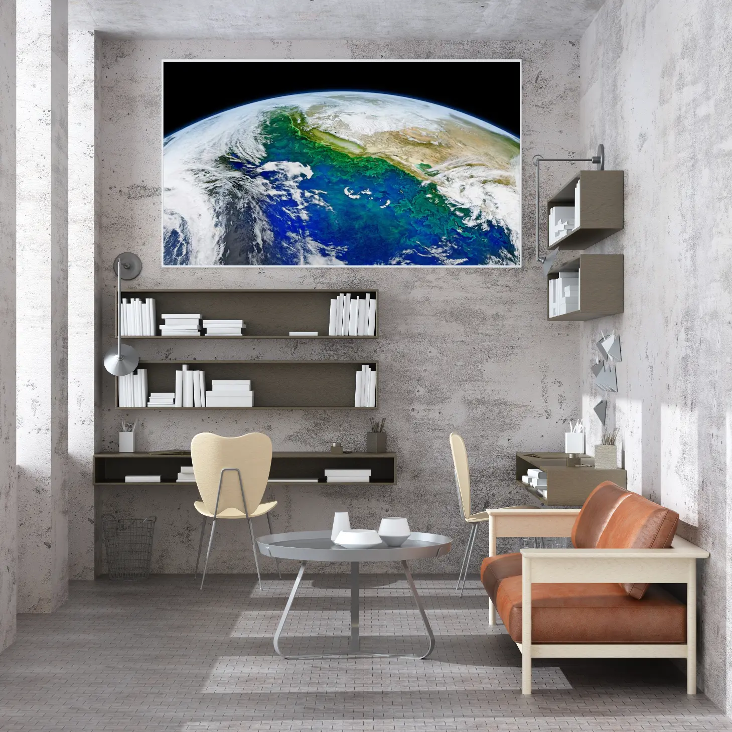 استمتع بجمال كوكبنا الأزرق من خلال هذه اللوحة الرائعة، التي تأسر الأنفاس بتفاصيلها الدقيقة وألوانها الزاهية. أضف لمسة من الإلهام إلى مساحتك، واجعل كل نظرة تذكيرًا بعظمة الطبيعة وجمال الأرض.