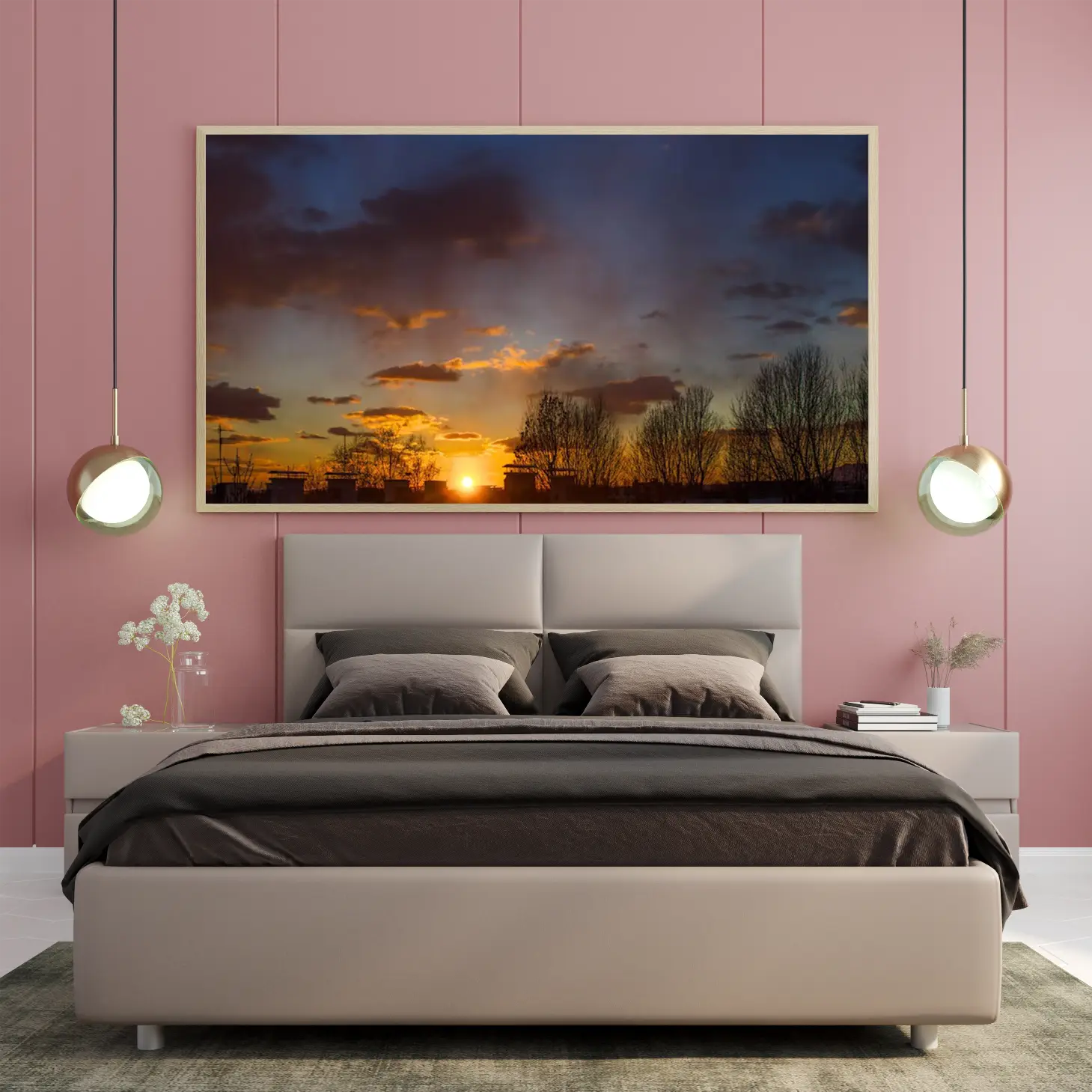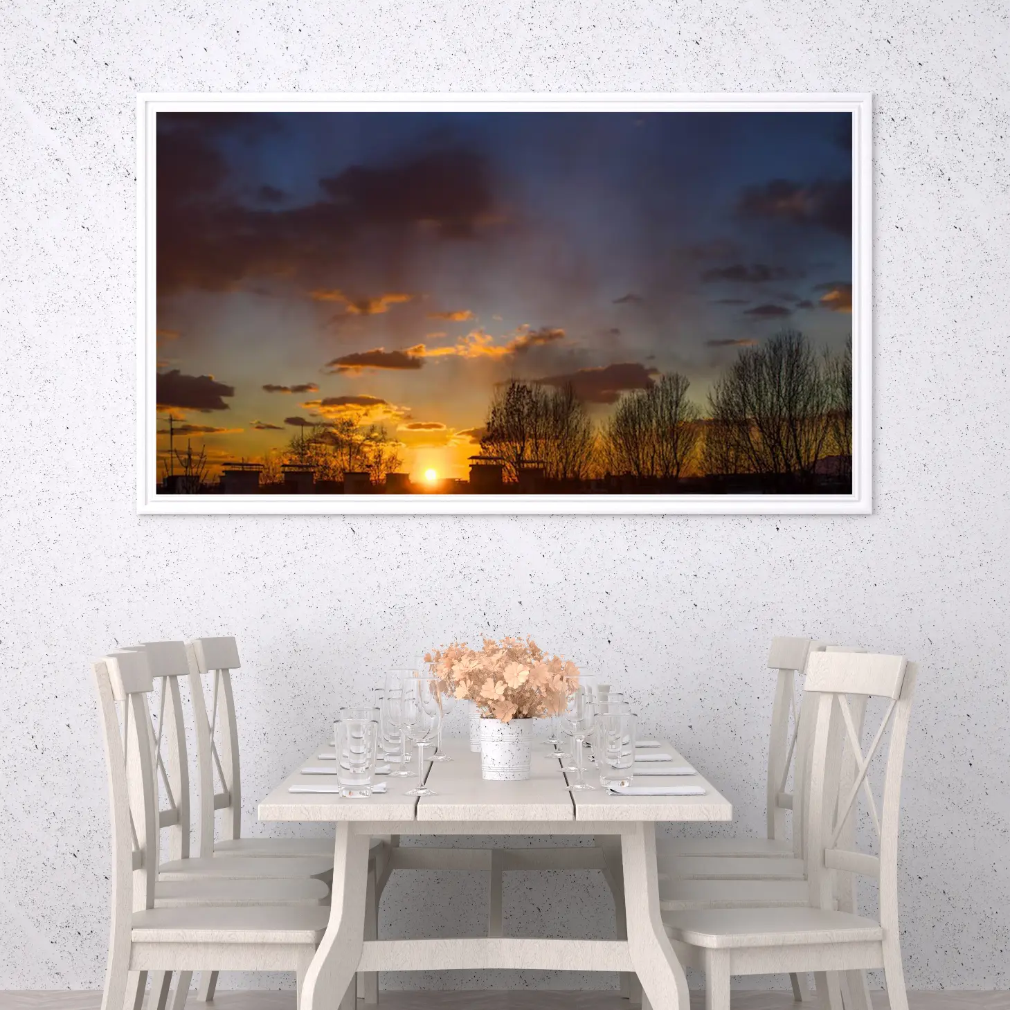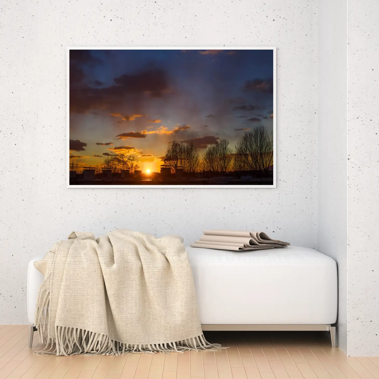 استمتع بجمال الغروب الساحر الذي ينعكس في هذه اللوحة الفاخرة، حيث تتناغم الألوان الدافئة مع تفاصيل الطبيعة لتخلق أجواءً من السكينة والجمال. تتوفر اللوحة بمقاسات متعددة وإطارات أنيقة، مما يجعلها خيارًا مثاليًا للتزيين أو كهدية تعبّر عن الذوق الرفيع في المناسبات الخاصة.