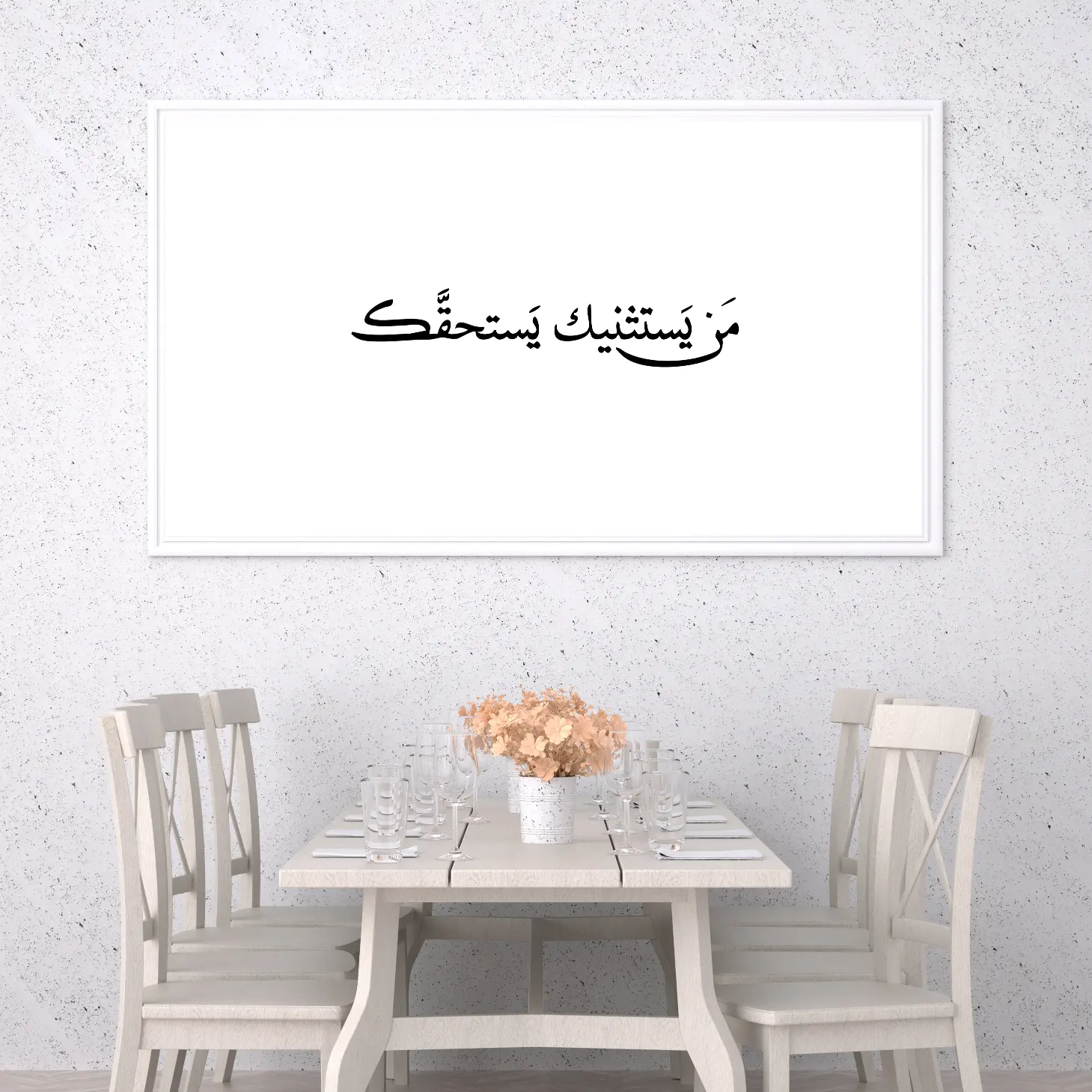 تجسد هذه اللوحة الفنية عبارة “من يستثنيك يستحقك” بأسلوب راقٍ، مما يضفي لمسة من العمق والجمال على أي مساحة. تتوفر بأحجام متنوعة وإطارات أنيقة، مما يجعلها خيارًا مثاليًا لتزيين المنازل أو المكاتب، أو حتى كهدية تعبّر عن الذوق الرفيع في المناسبات الخاصة. اجعل من هذه اللوحة رمزًا للتقدير والاهتمام، فهي تعكس قيمًا سامية وتضفي لمسة فريدة على كل زاوية.