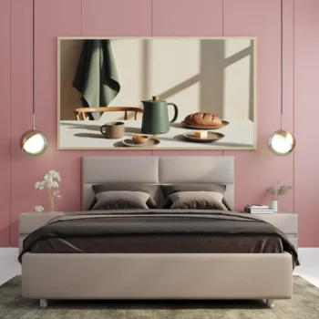 لوحة طبيعة هادئة – مشهد فطور – ألوان دافئة – هادئ – لوحات فن عصري – لوحات كانفاس
