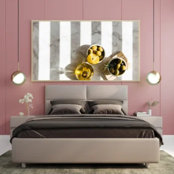 لوحة طبيعة هادئة – فواكه وزيت زيتون – ألوان دافئة – مريح – لوحات طبيعة – لوحات كانفاس