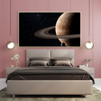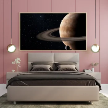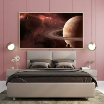 لوحة كواكب مضيئة بألوان دافئة مع تفاصيل دقيقة، تعكس جمال الكون، مناظر طبيعية، لوحات فنية عصرية، لوحات جدارية للمنزل.